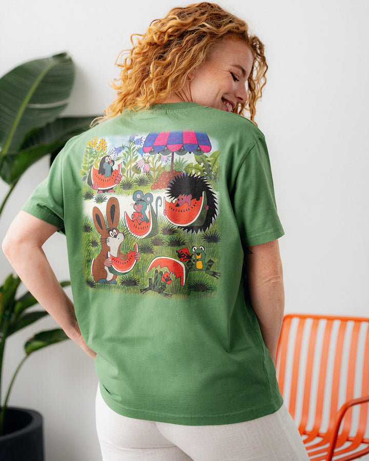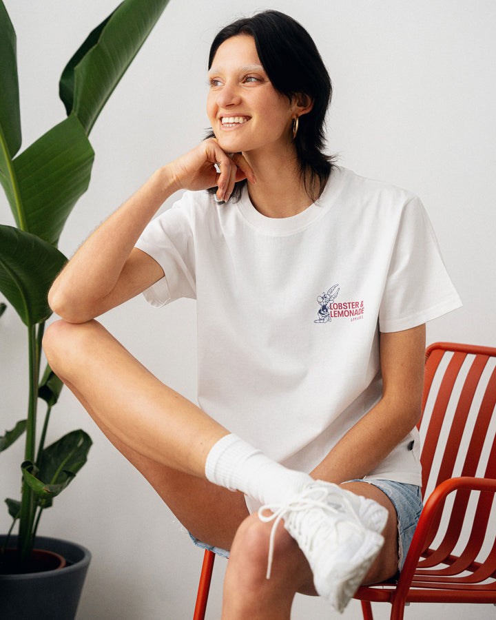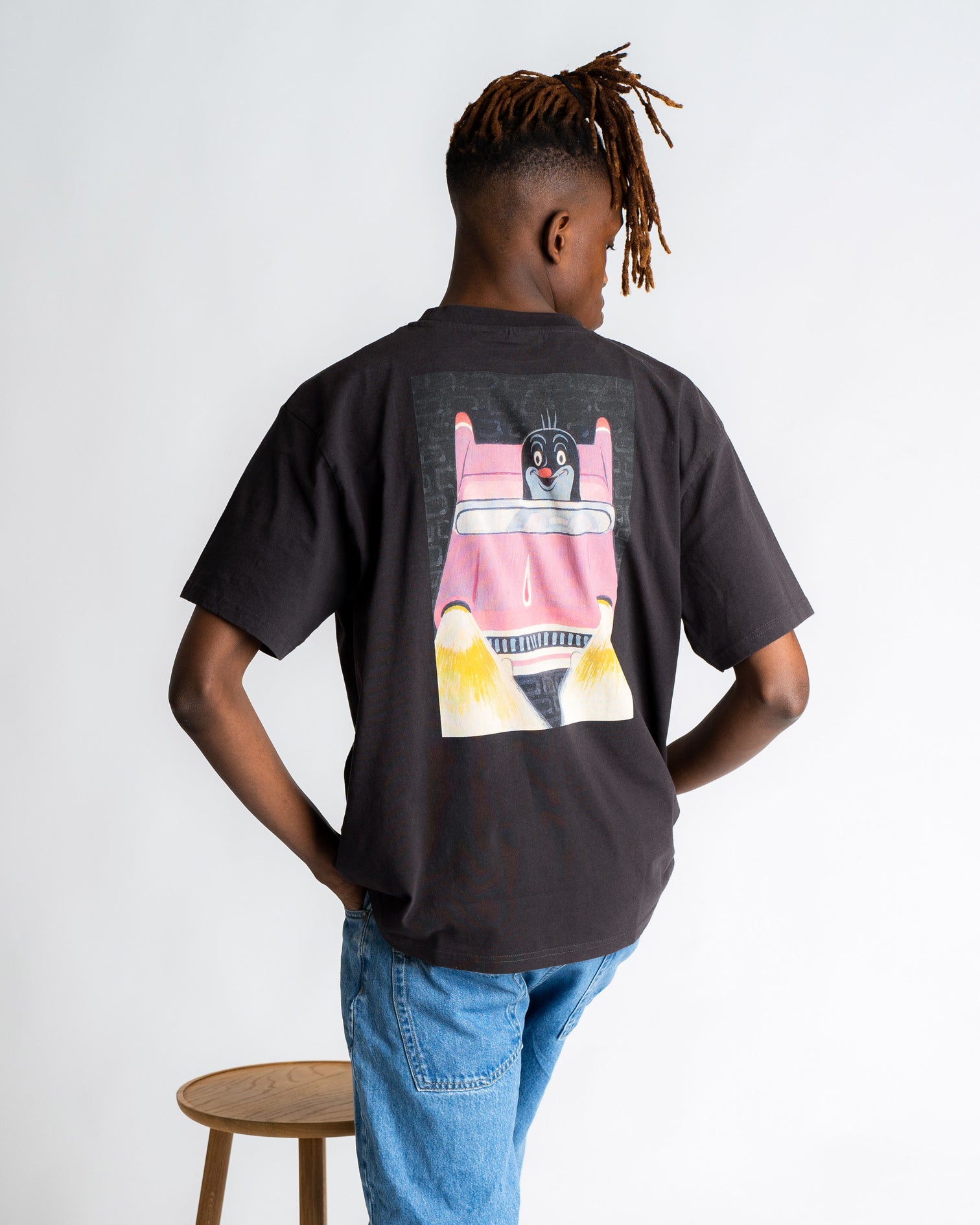 Auf dem Rücken des beigefarbenen T-Shirts hängt Pippi Langstrumpf lässig von einem Zitronenbaum. Der Stick auf der linken Brust rundet das Design des stückgefärbten Shirts aus Open End Baumwolle ab. Mit der Långstrump Collection übersetzen wir die farbenfrohe Welt von Pippi in moderne Streetwear. Jasmin ist 175cm groß und trägt Größe XS.