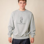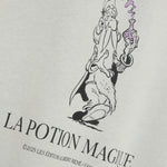 The large front print of the gray-green sweater depicts the original druid Miraculix, Panoramix, holding his famous magic potion. The purple potion stands out as a special color highlight.