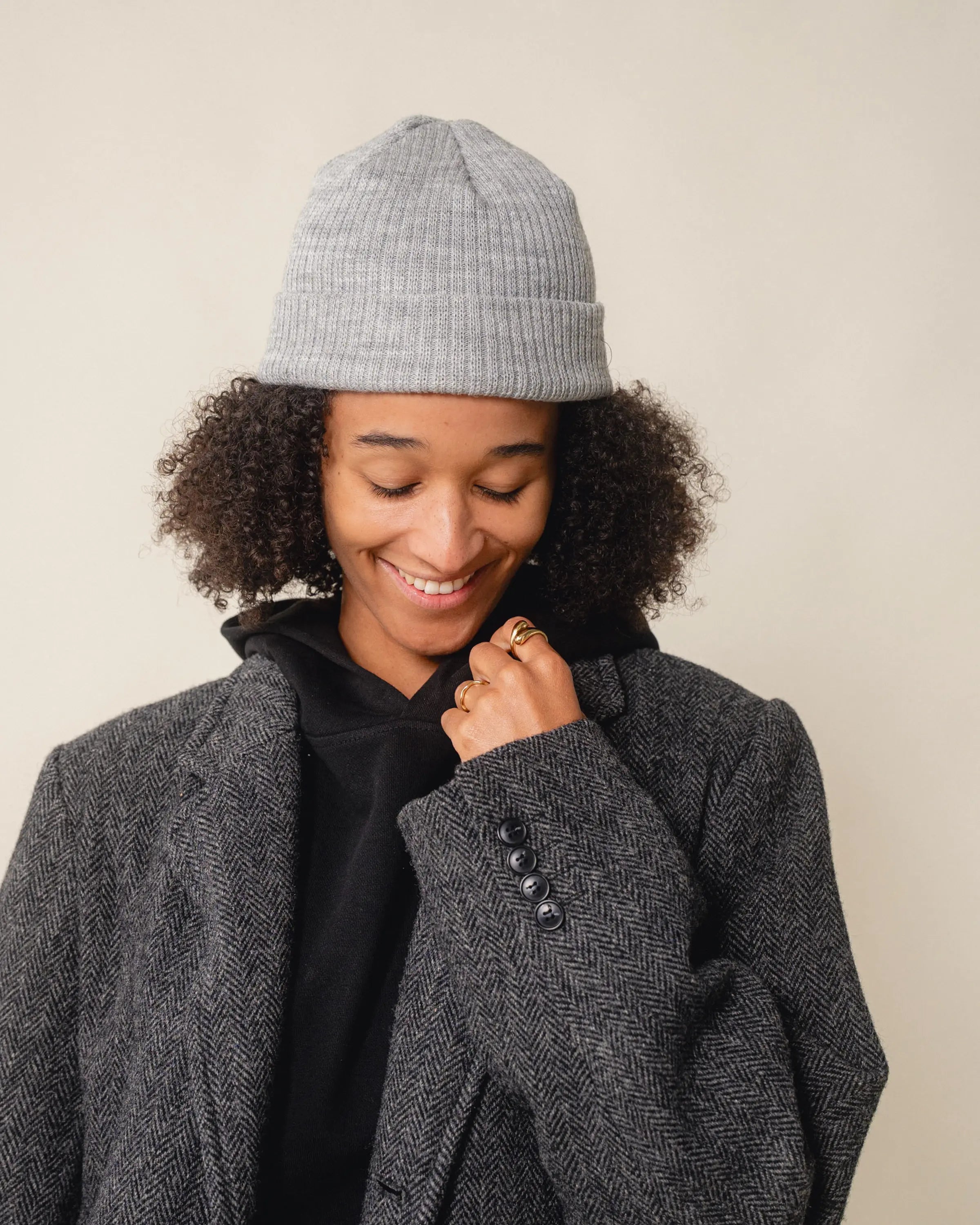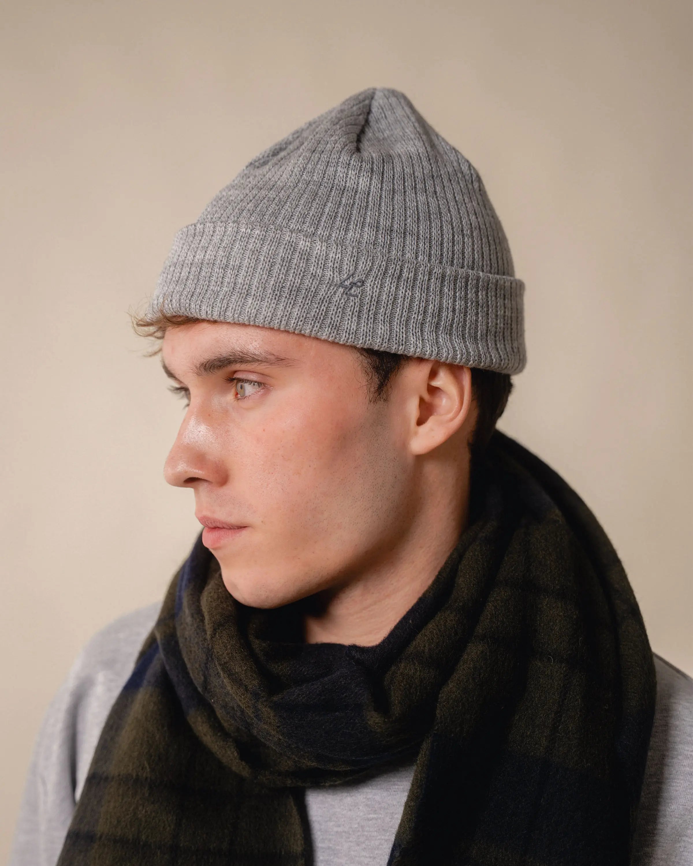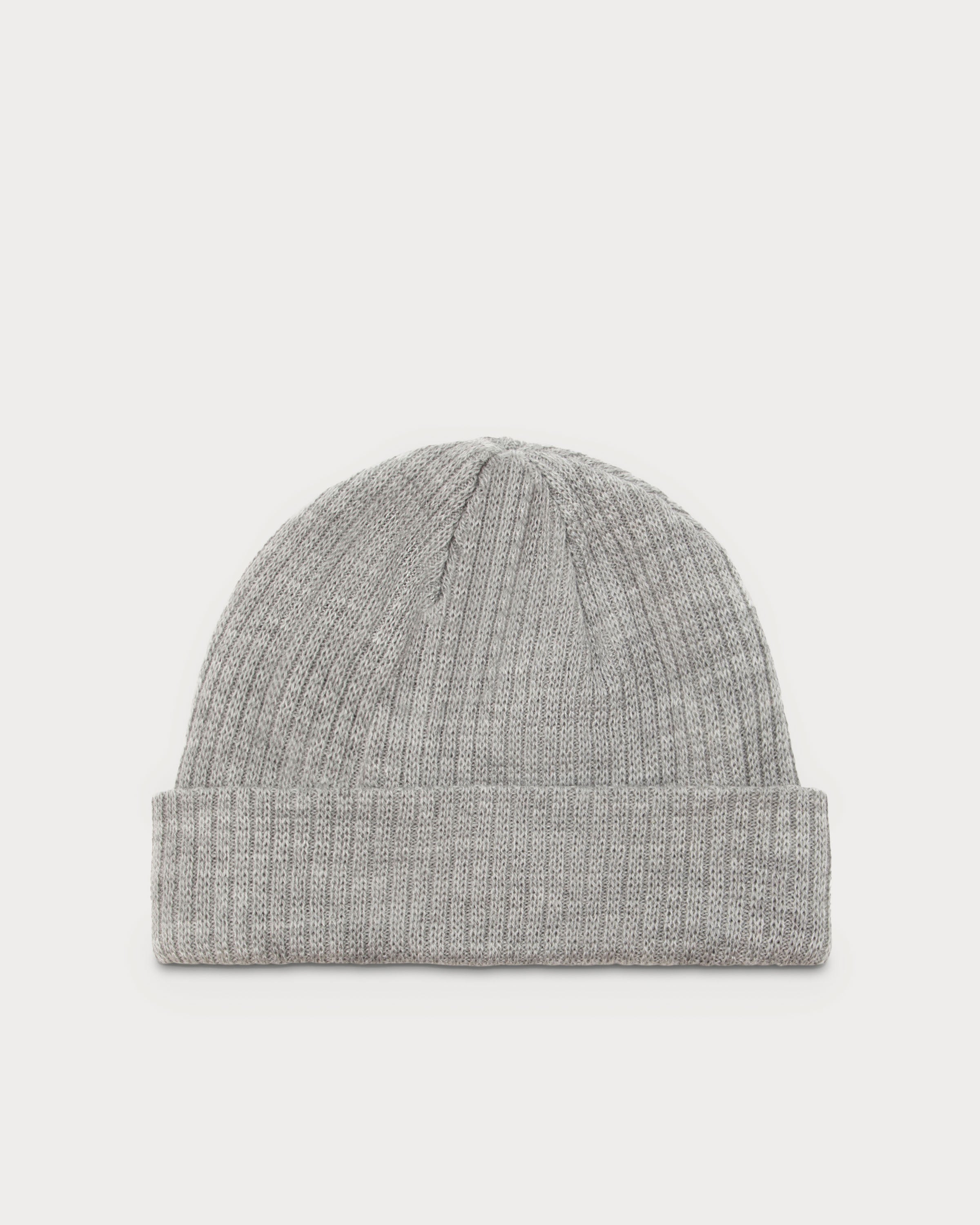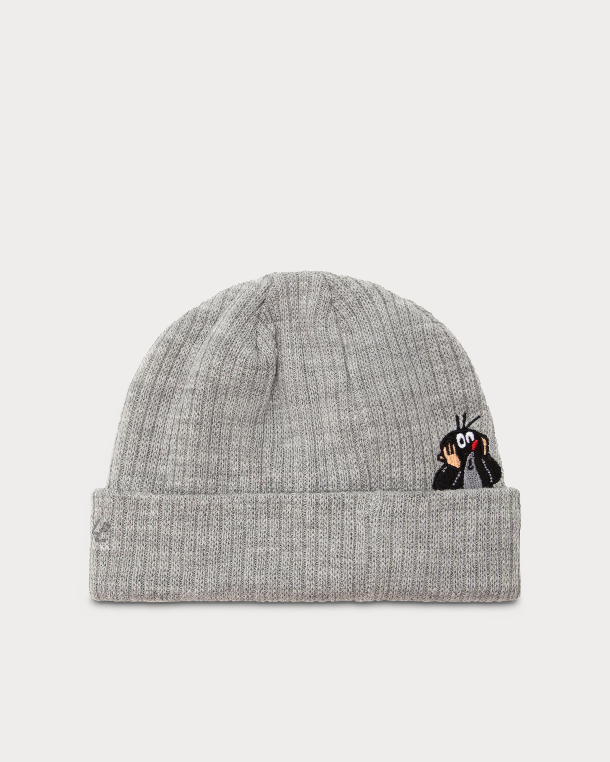 The little mole is a fine embroidery on the back right above the brim of the grey Fisherman Beanie.