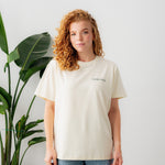 The T-shirt comes in a boxy fit and is 220 gsm. Ina is 168cm tall and wears size XS.
