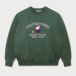 The dark green, college-style sweater features a large front embroidery of Grandpa Pig playing golf. It's framed by "Peppatown Golf Club" lettering.