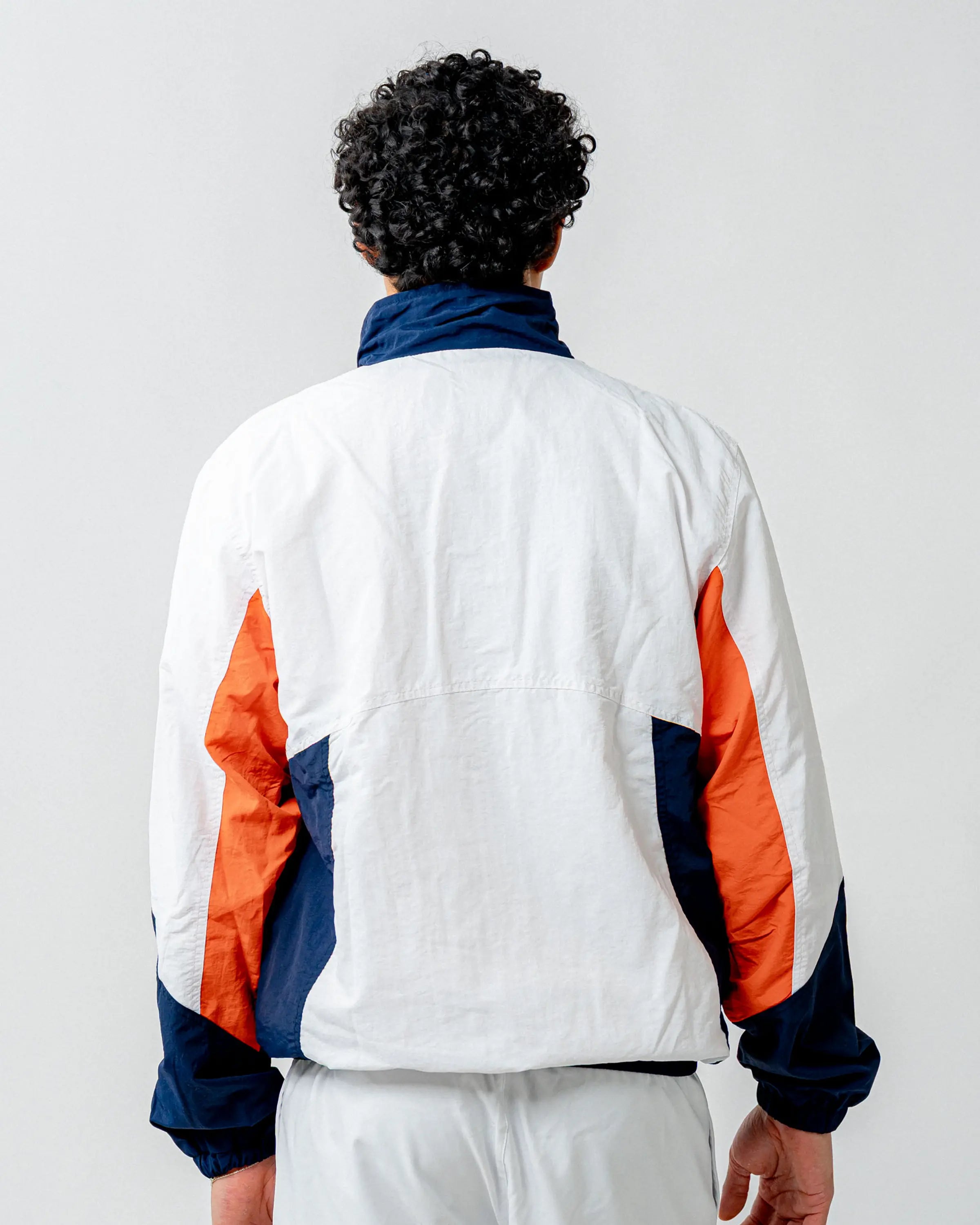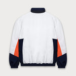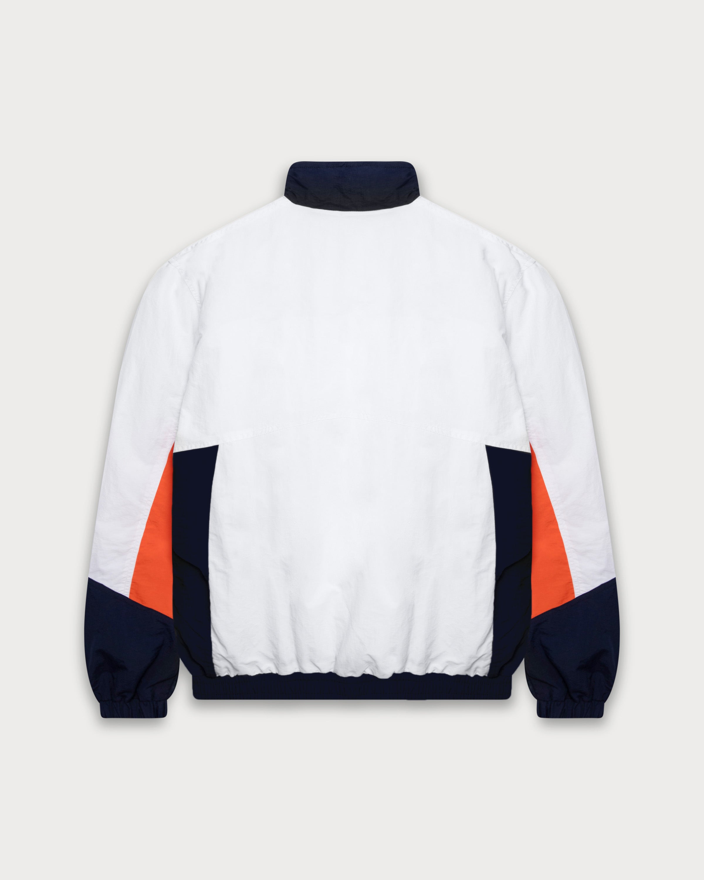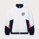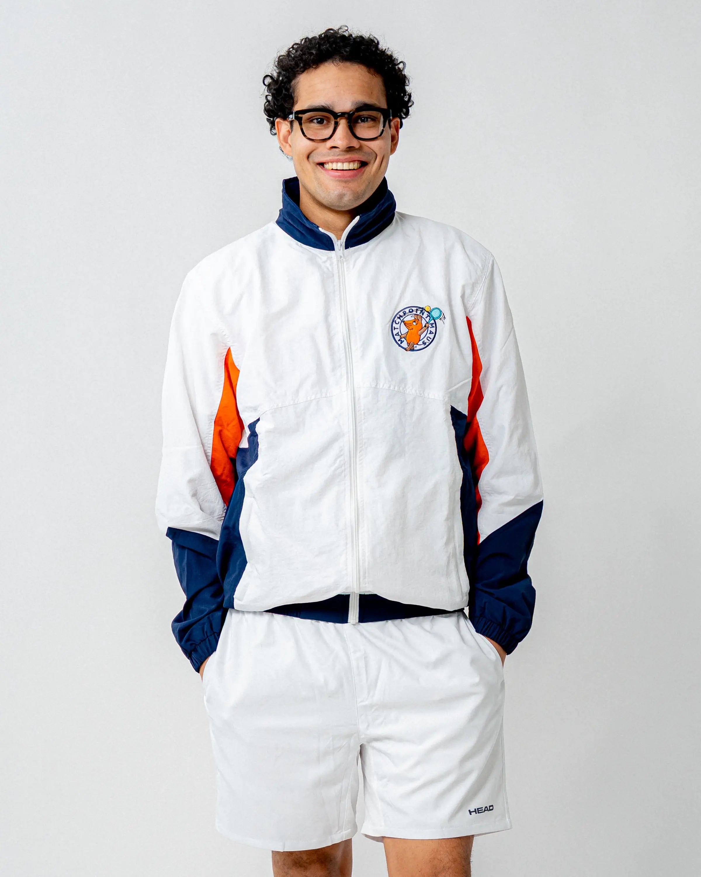 On the front of this sporty tennis jacket, the mouse is featured as a high-quality embroidered patch at match point, encircled by the circular "MATCHPOINT MAUS" lettering. The multicolored design in white, navy, and orange combined with the lightweight nylon fabric gives the jacket a sporty look straight from the court.