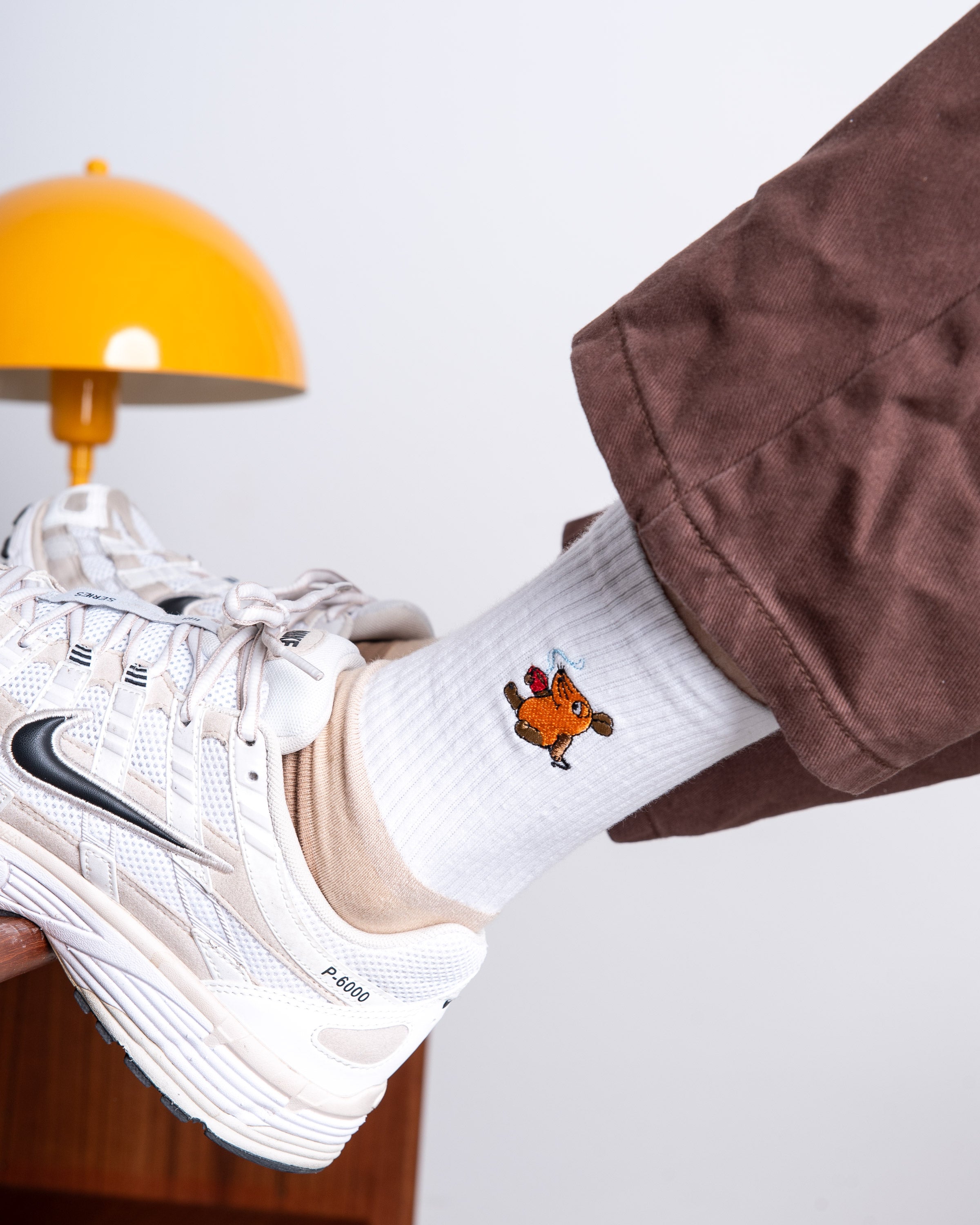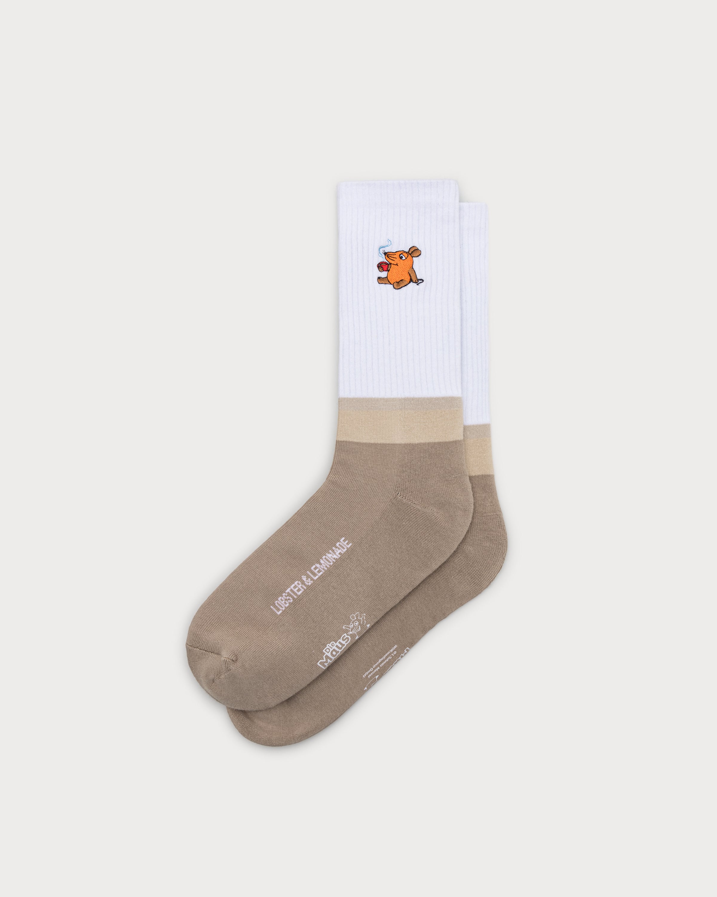 Ces chaussettes de sport confortables représentent la souris, une tasse de café chaud à la main. Les coloris marron, beige et blanc du tissu s'harmonisent parfaitement avec le thème du café. Dans la collection Souris et ses amis, nous réinterprétons des personnages célèbres des séries cultes « L'Envoyé de la Souris » et « Le Petit Maulwurf » pour un look streetwear moderne.