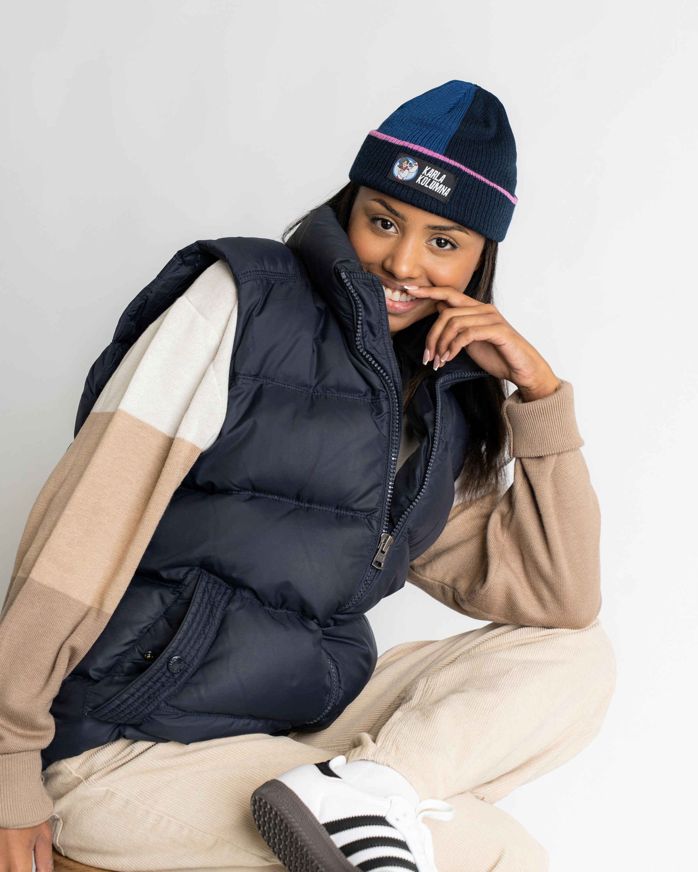 Le bonnet Fisherman se distingue par ses deux nuances de bleu au look colorblock. La broderie Karla Kolumna sur le devant complète le design. Dans la collection Bibi & Benjamin, nous réinterprétons les personnages emblématiques des séries cultes « Bibi Blocksberg » et « Benjamin Blümchen » pour un look streetwear moderne.