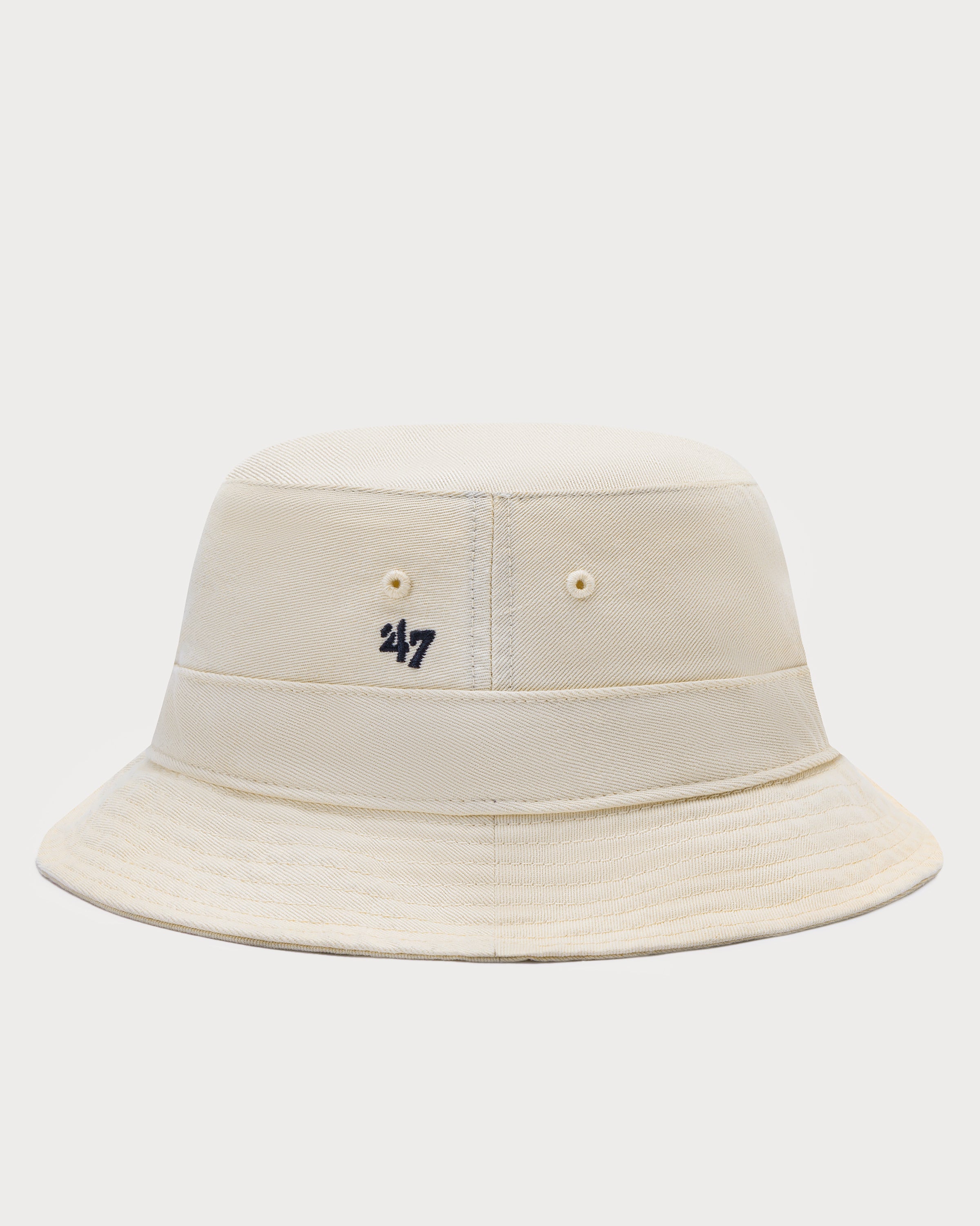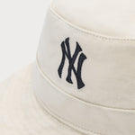 Le chapeau seau beige présente le logo emblématique du monogramme NY des Yankees de New York de la MLB sous forme de broderie en relief.