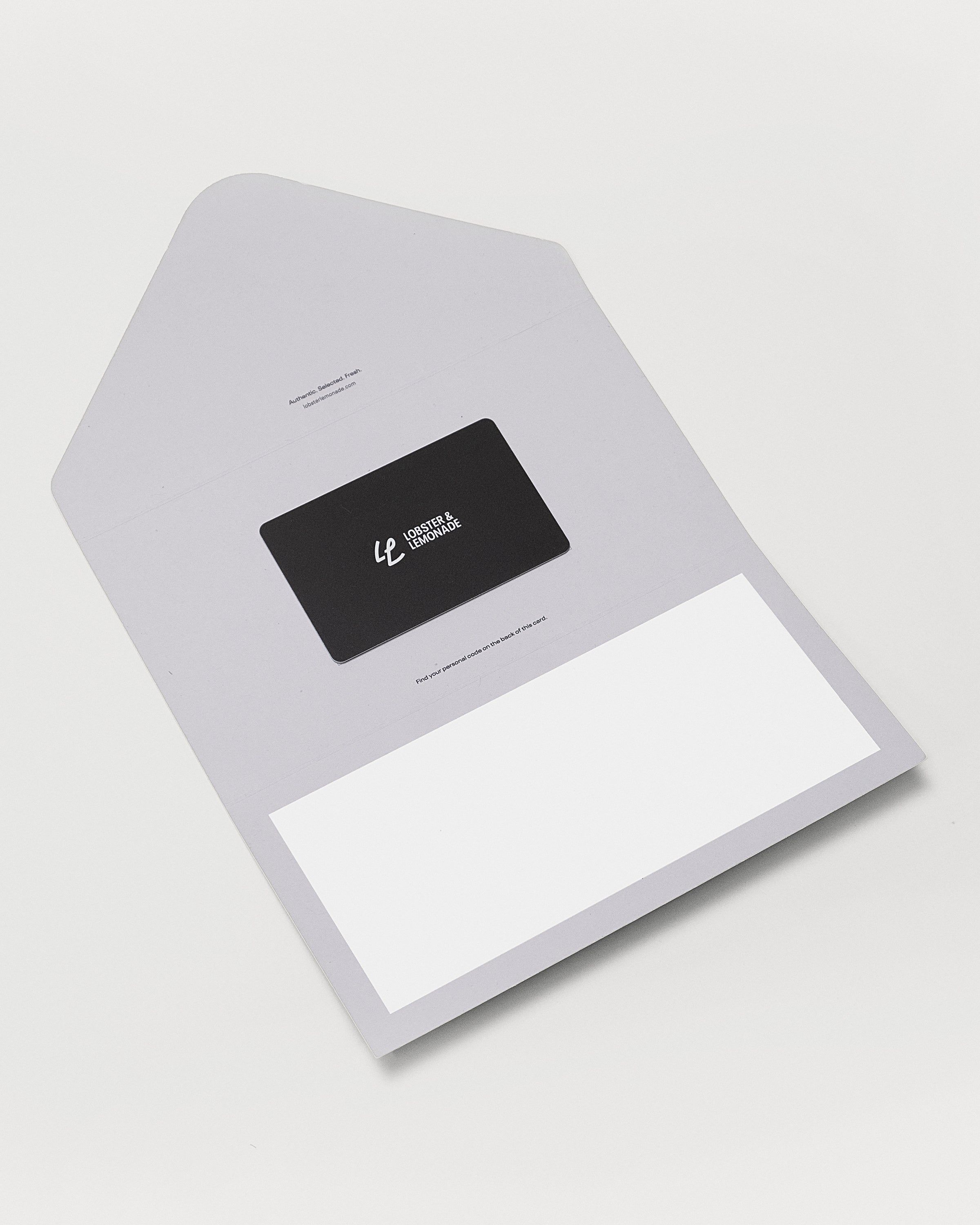 Le cadeau parfait – notre jolie carte-cadeau L&L fabriquée à partir de papier recyclé et de PVC recyclé.