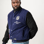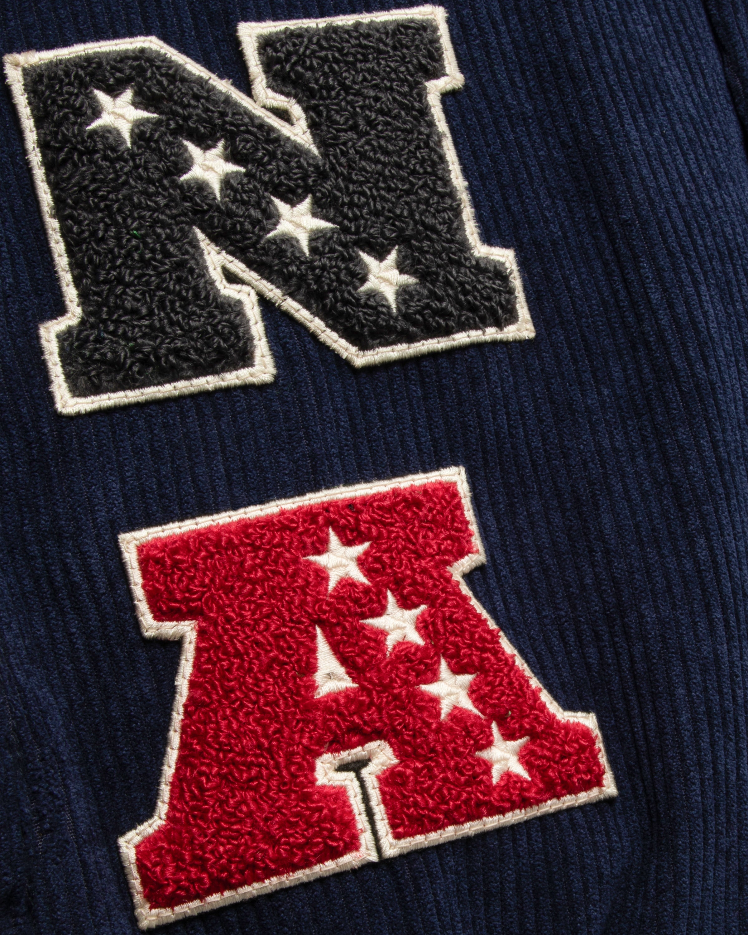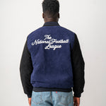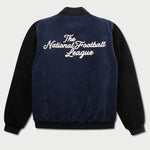 Cette veste universitaire noire et bleu marine, au look universitaire, impressionne par sa généreuse broderie « The National Football League » au point de chaînette au dos. Des badges sur le devant complètent son design accrocheur.
