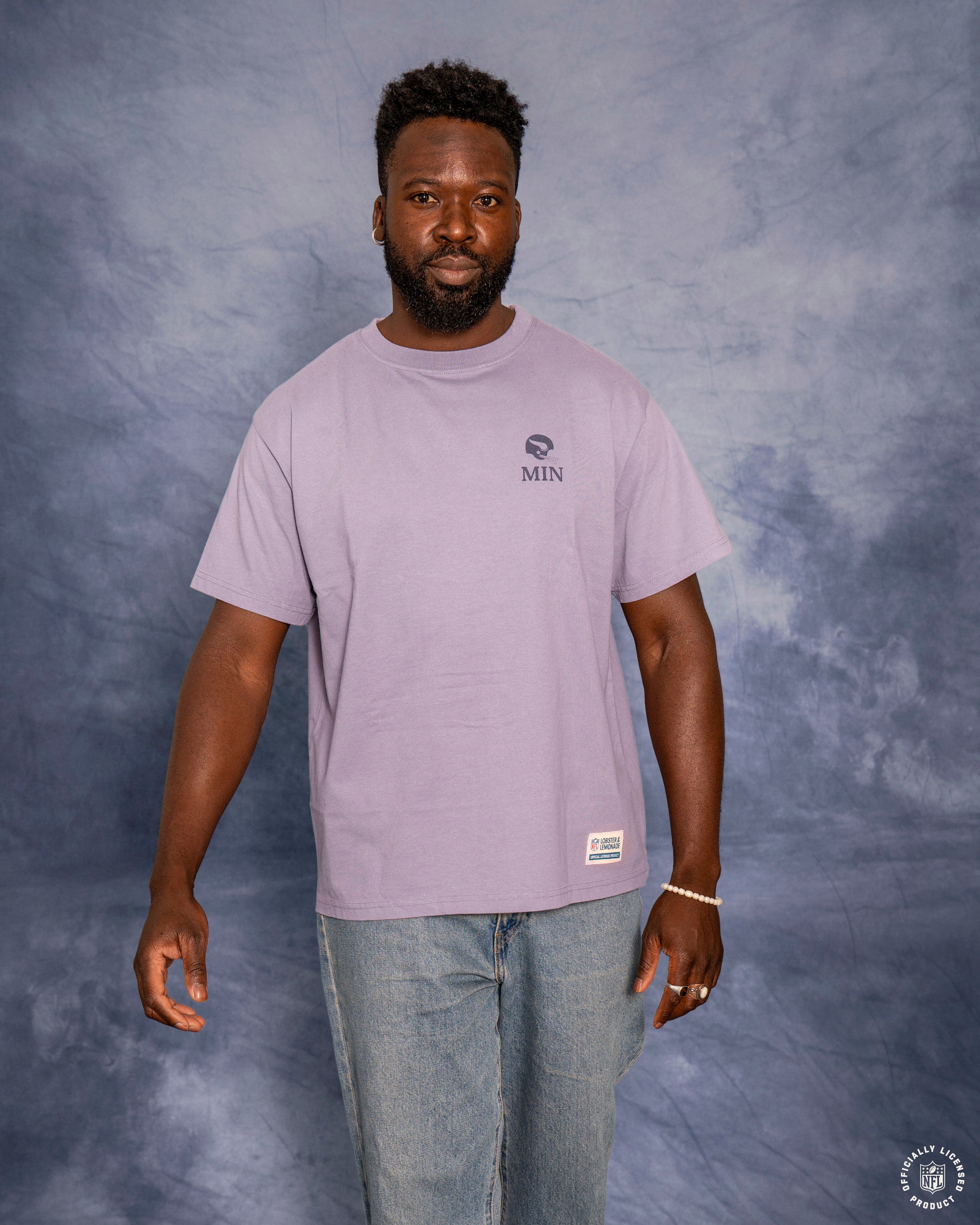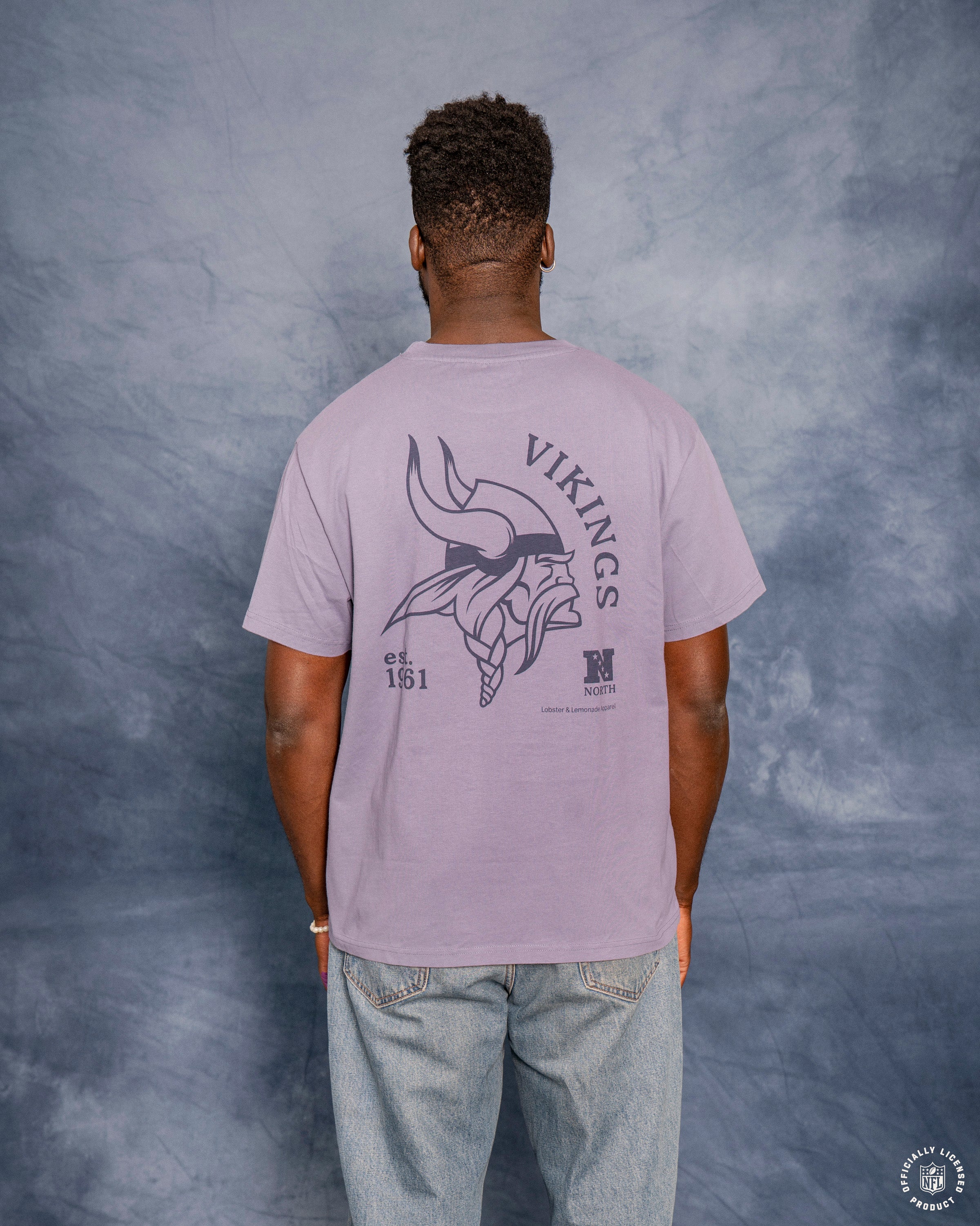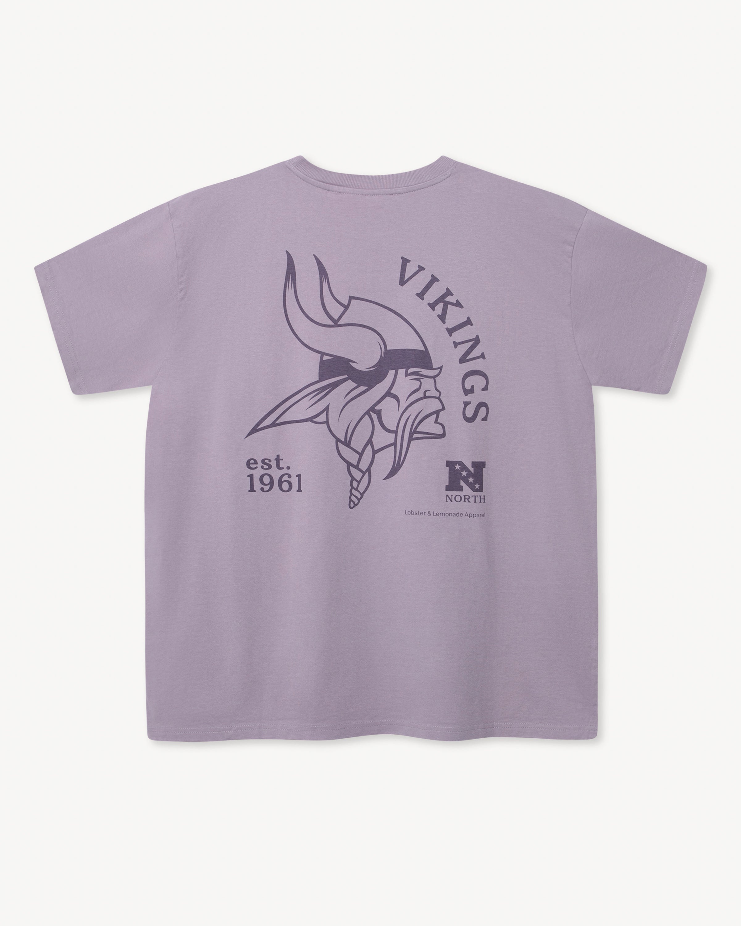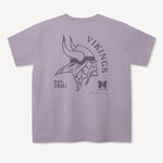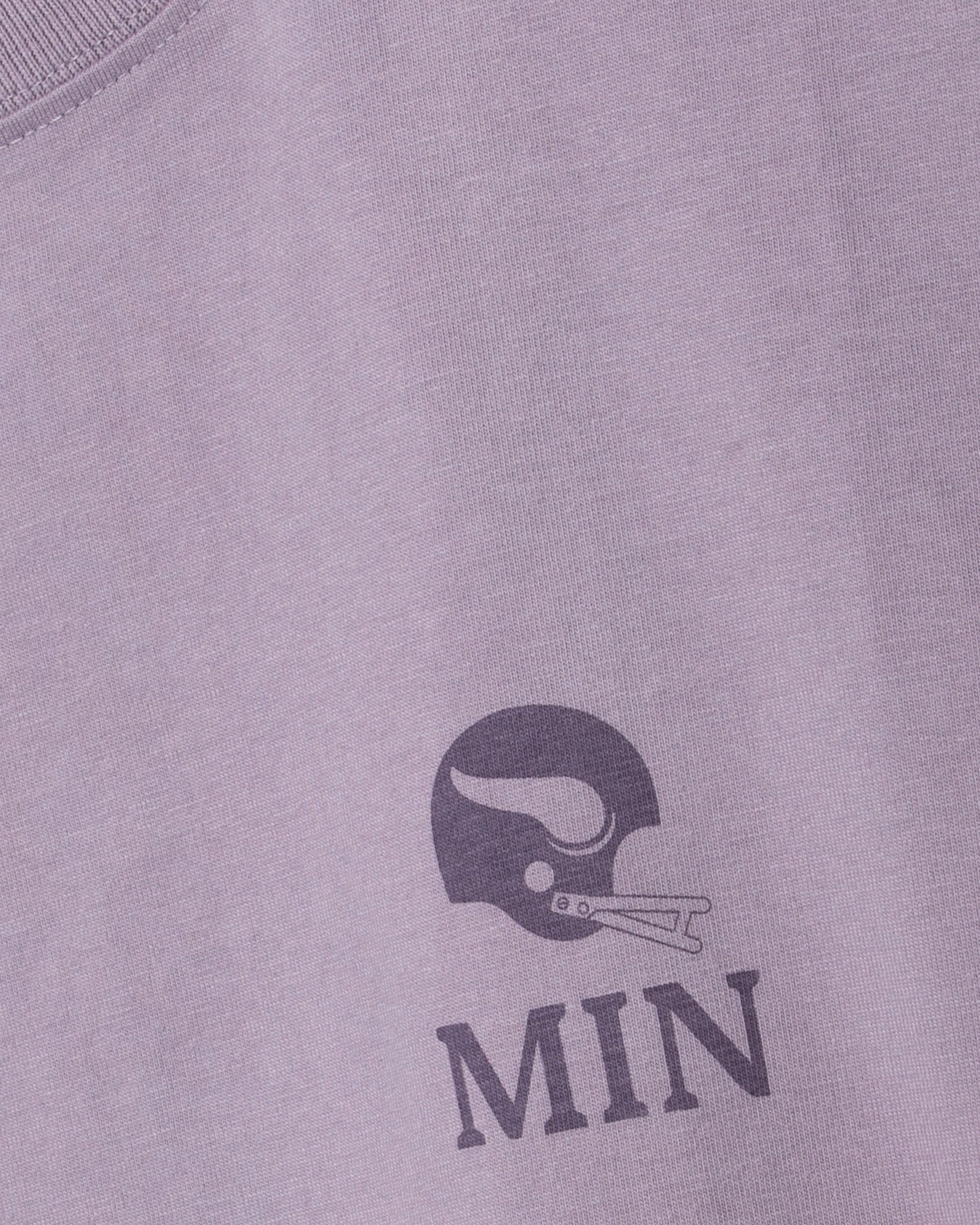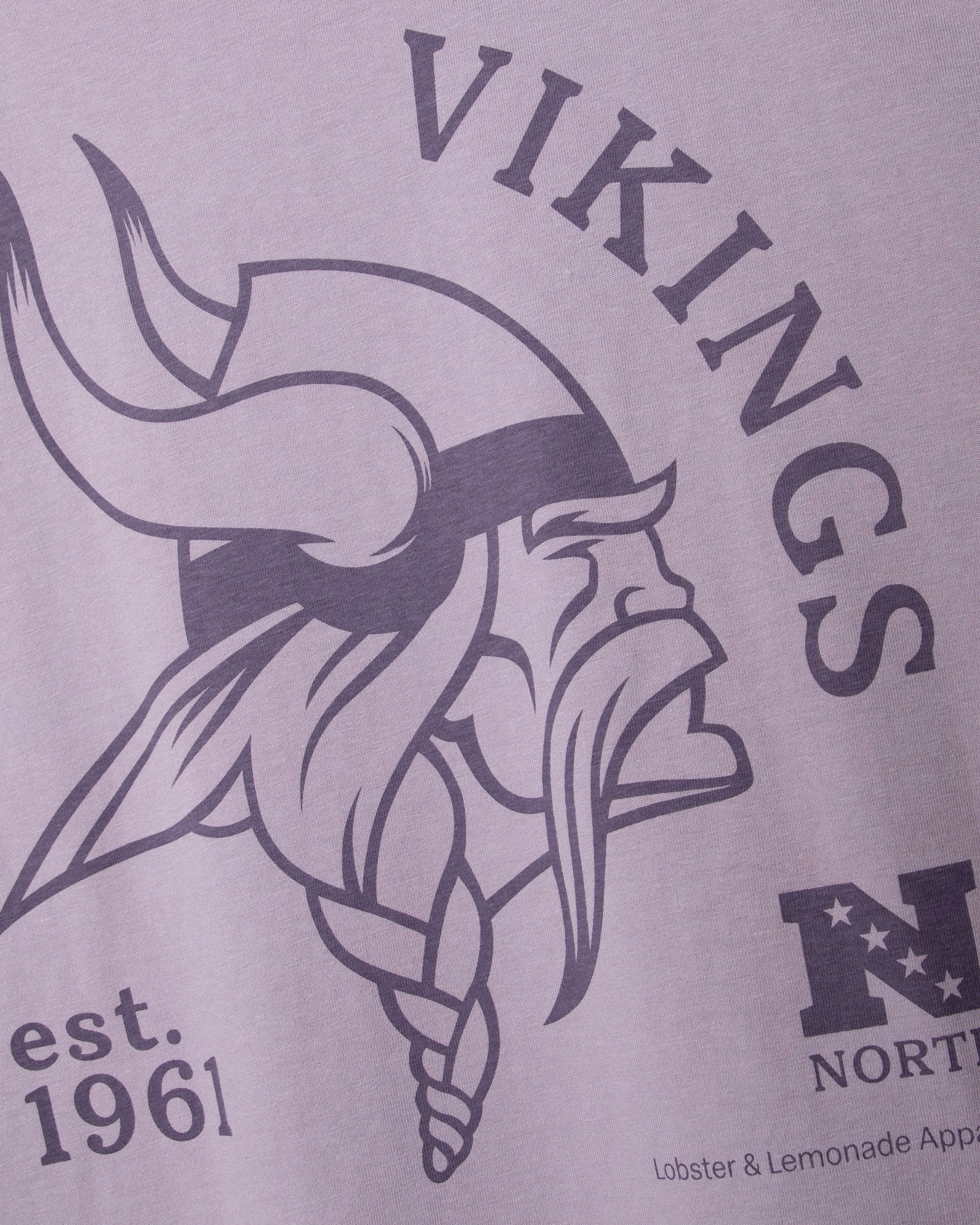 Ce t-shirt violet arbore un grand imprimé des Vikings du Minnesota dans le dos, avec notamment le logo Norseman. Un petit imprimé du casque classique des Vikings sur la poitrine gauche et une étiquette tissée en toile à la taille complètent son look rétro.