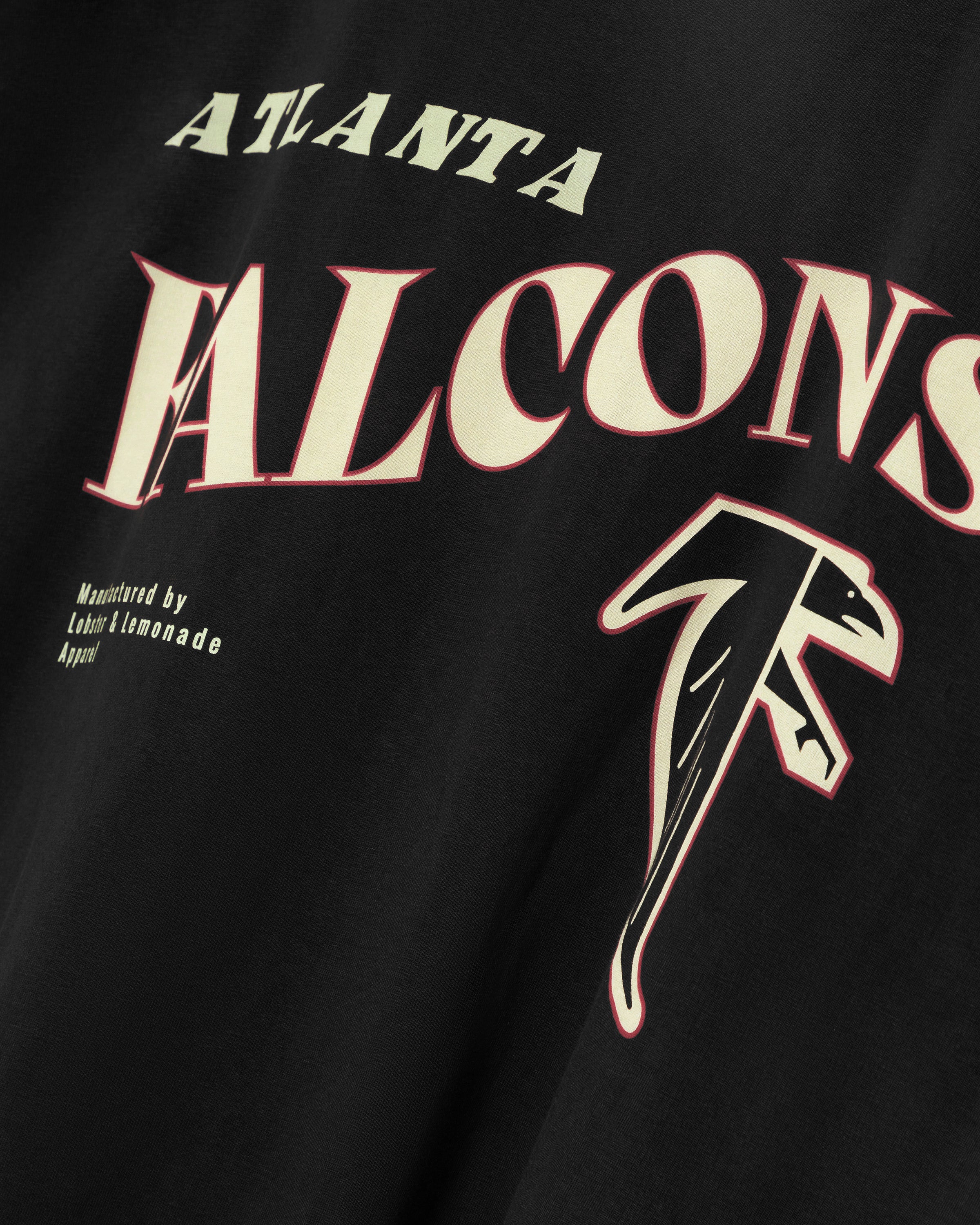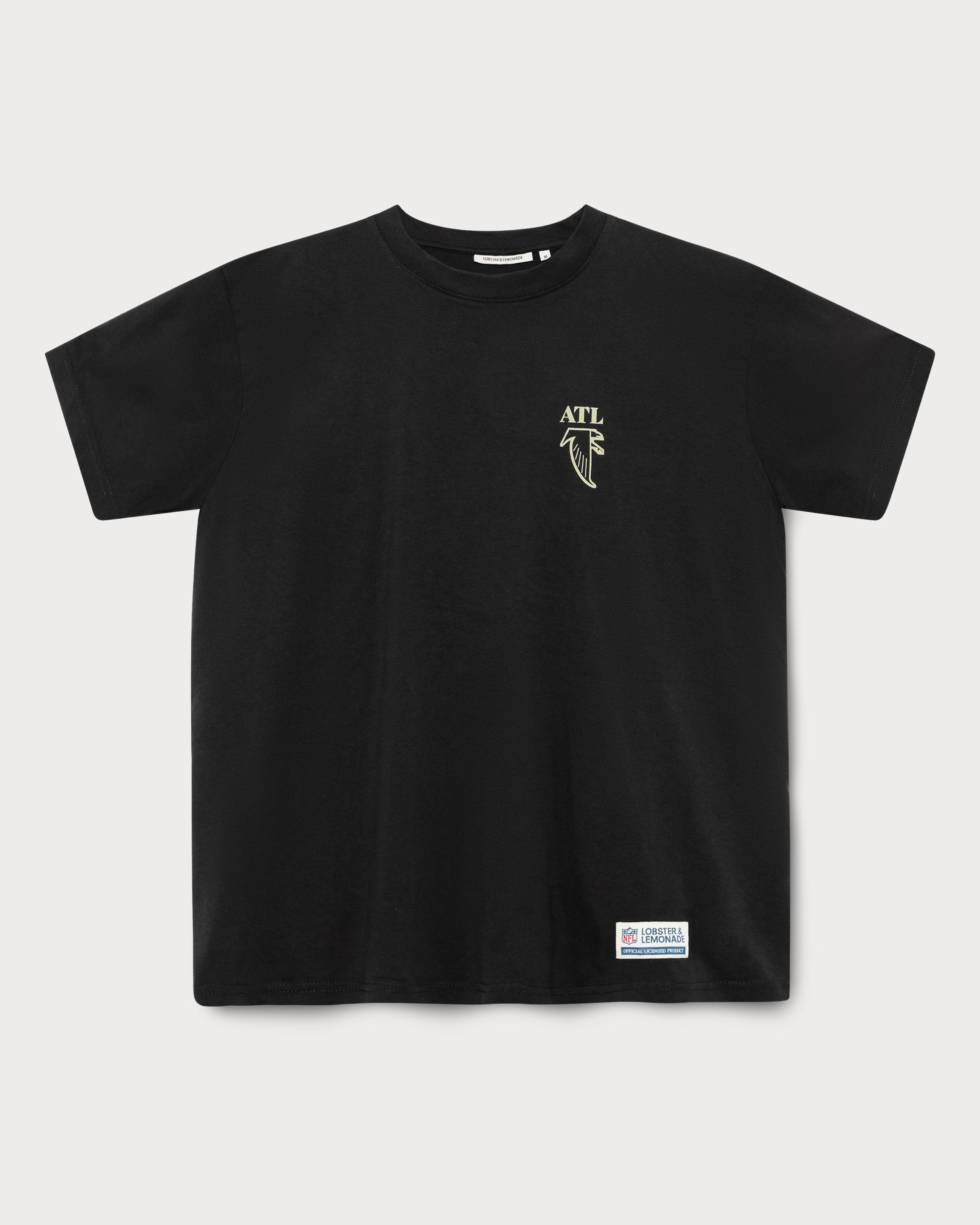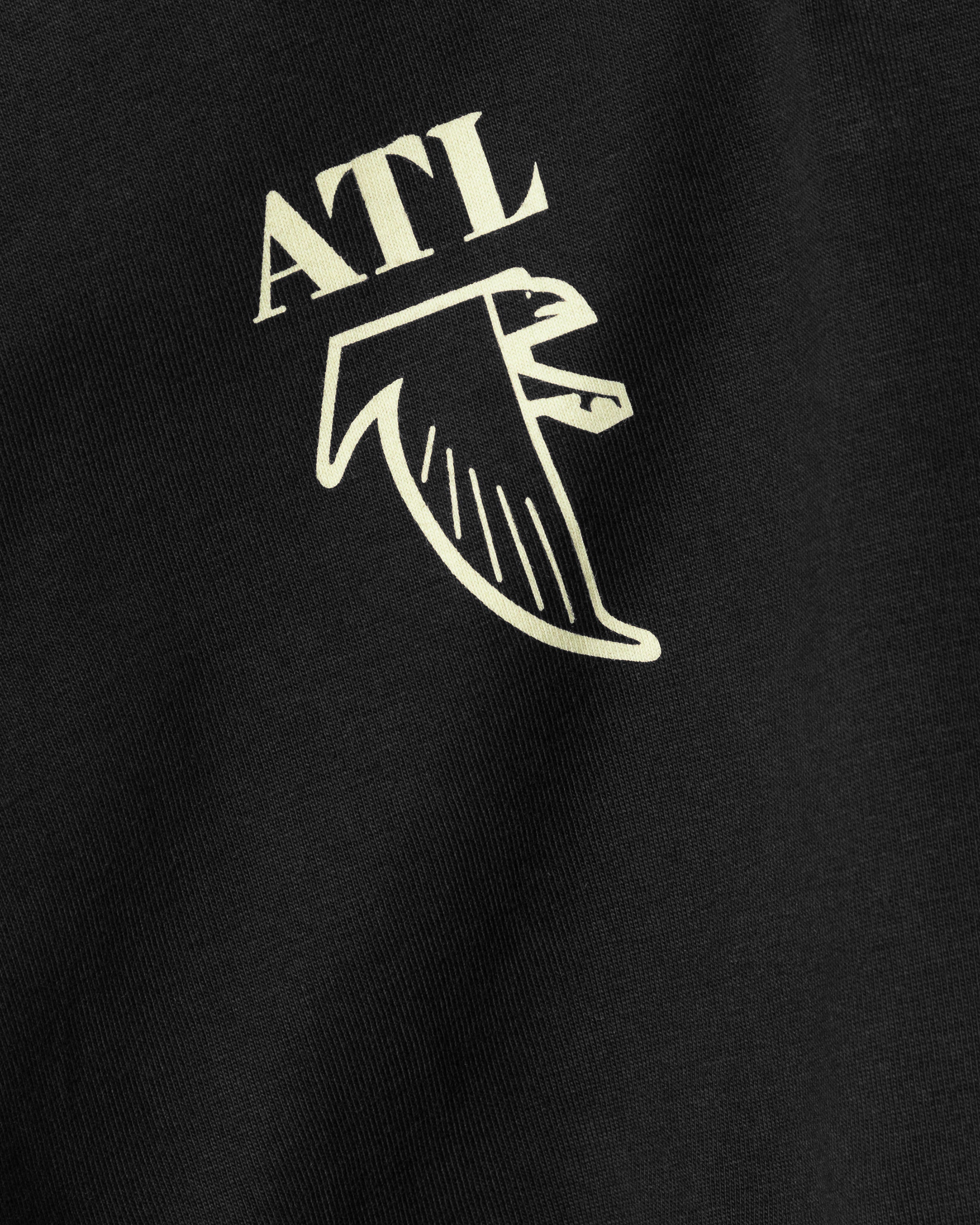 Ce t-shirt noir arbore un grand imprimé des Falcons dans le dos, incluant le logo classique. L'imprimé du logo sur la poitrine gauche et l'étiquette tissée en toile à la taille complètent son look rétro.