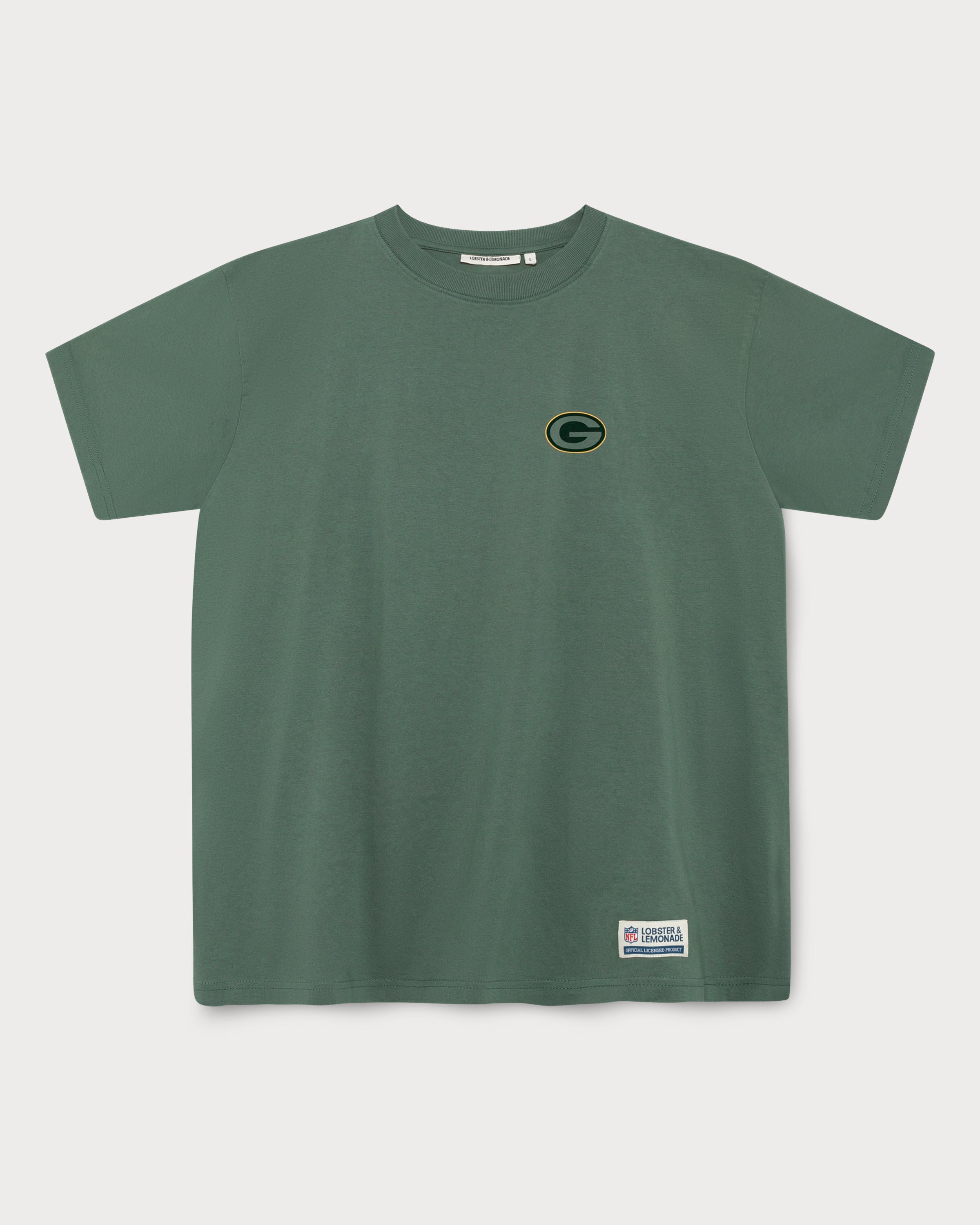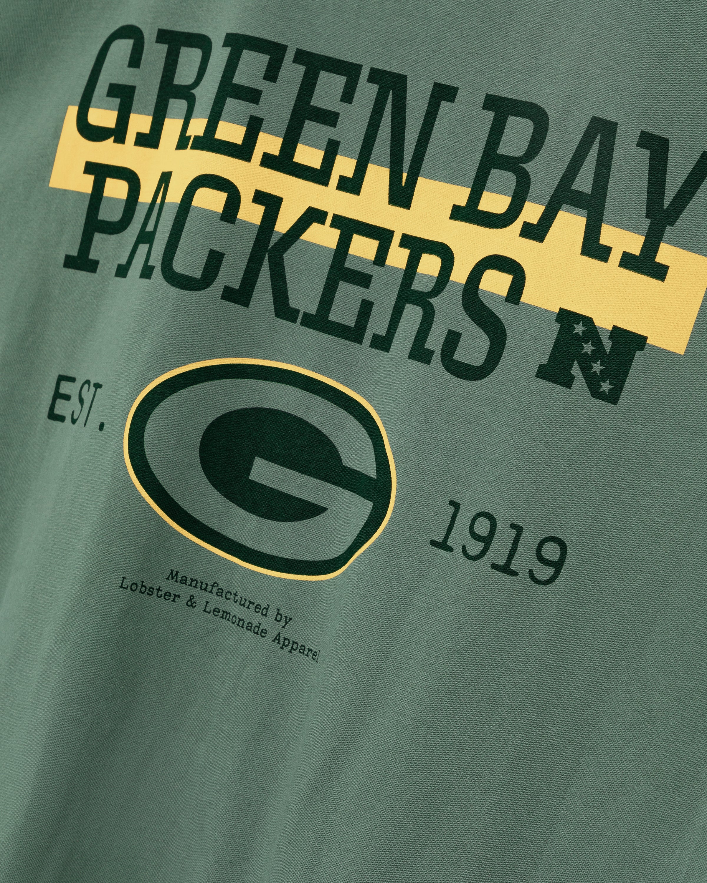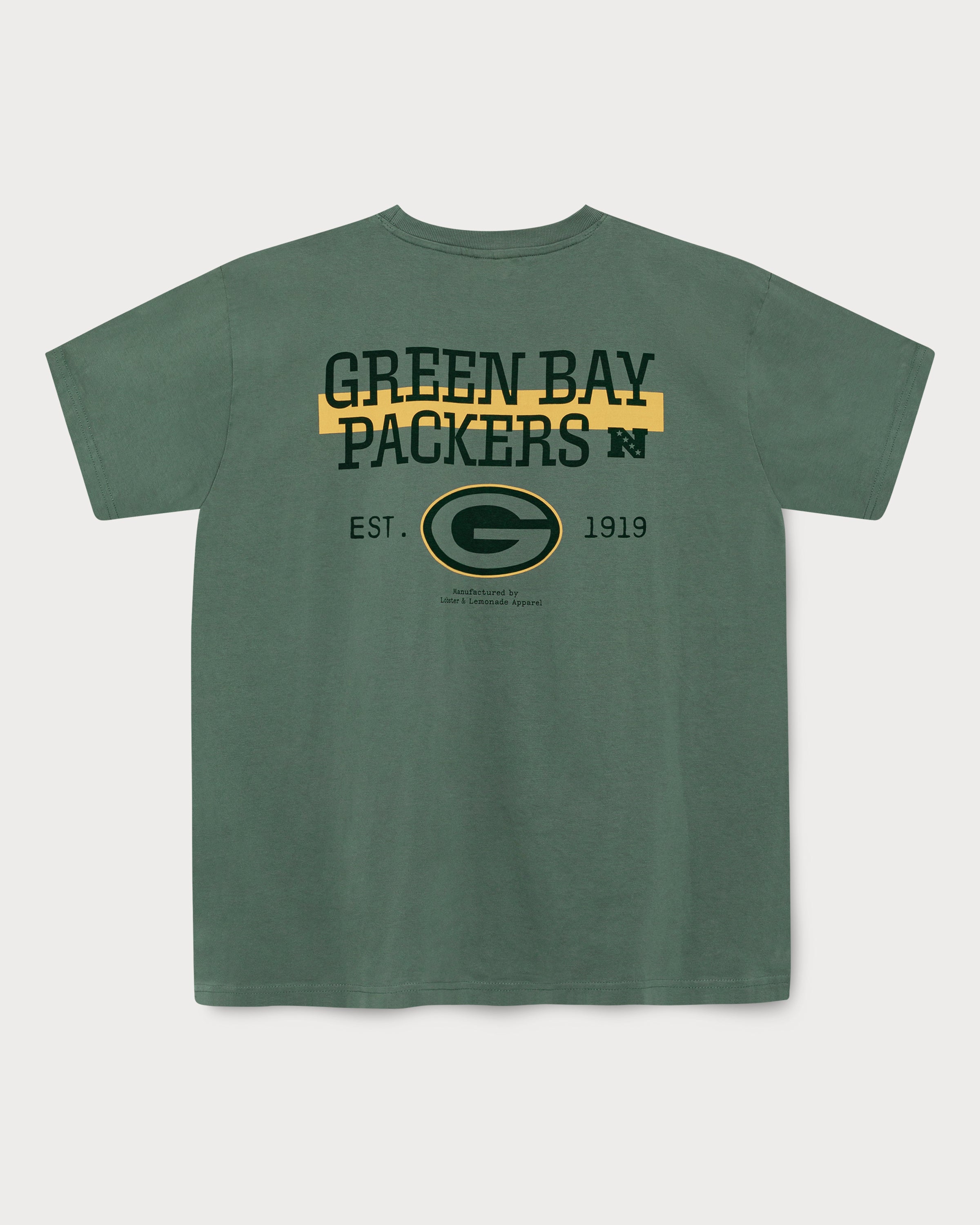 Ce t-shirt vert arbore un grand imprimé des Green Bay Packers dans le dos, avec le classique logo « G ». Le logo imprimé sur la poitrine gauche et l'étiquette tissée en toile à la taille complètent son look rétro.