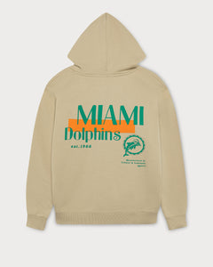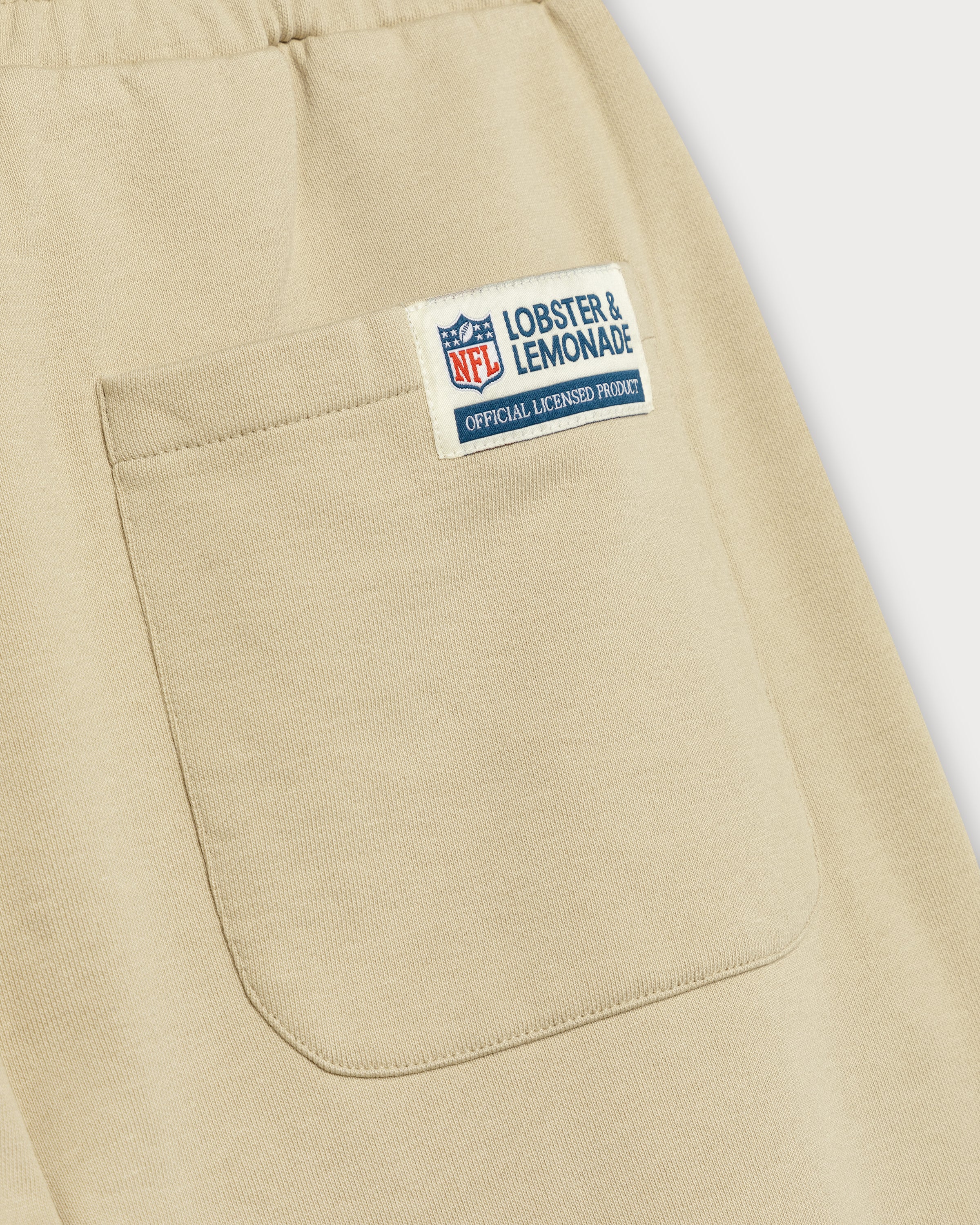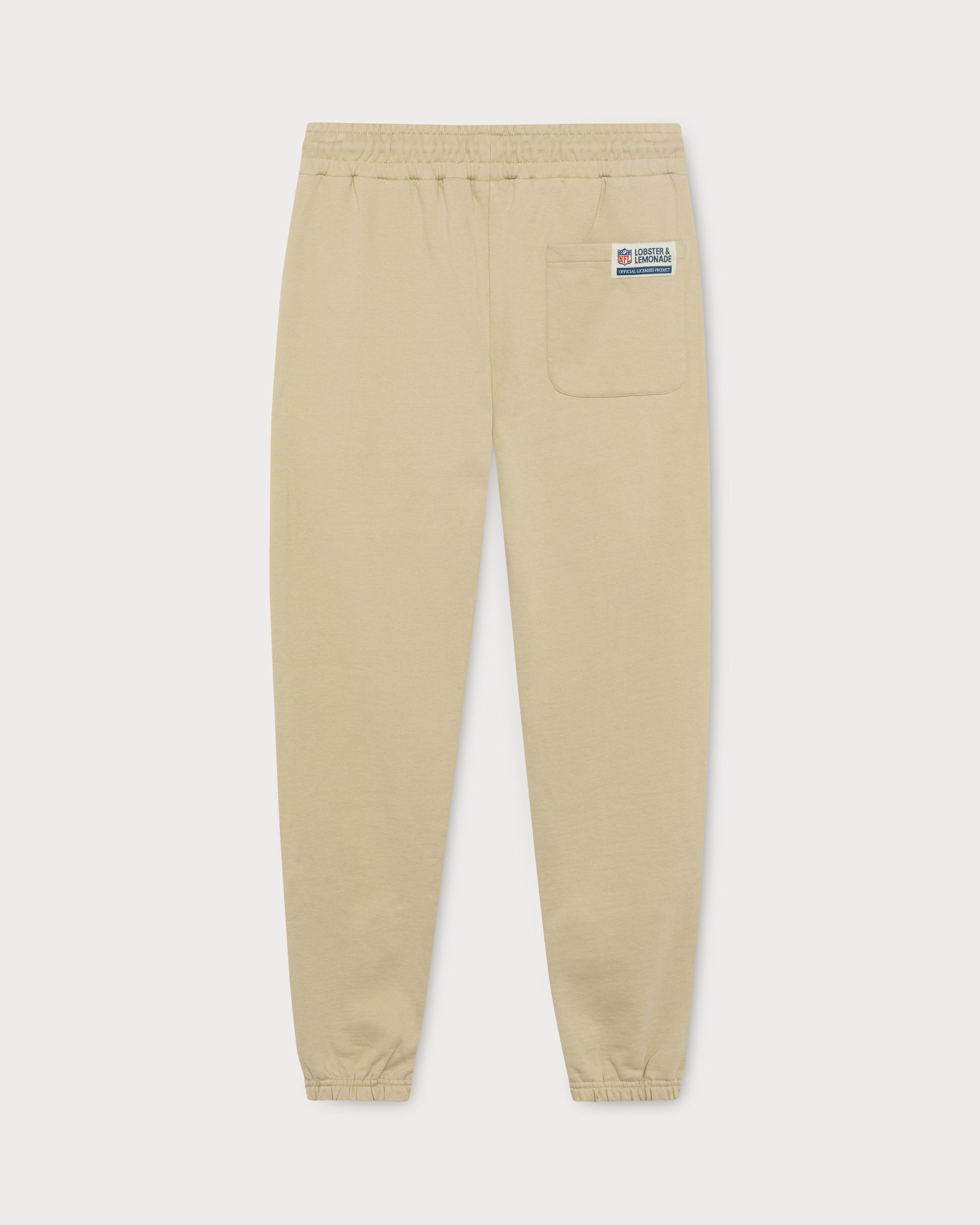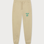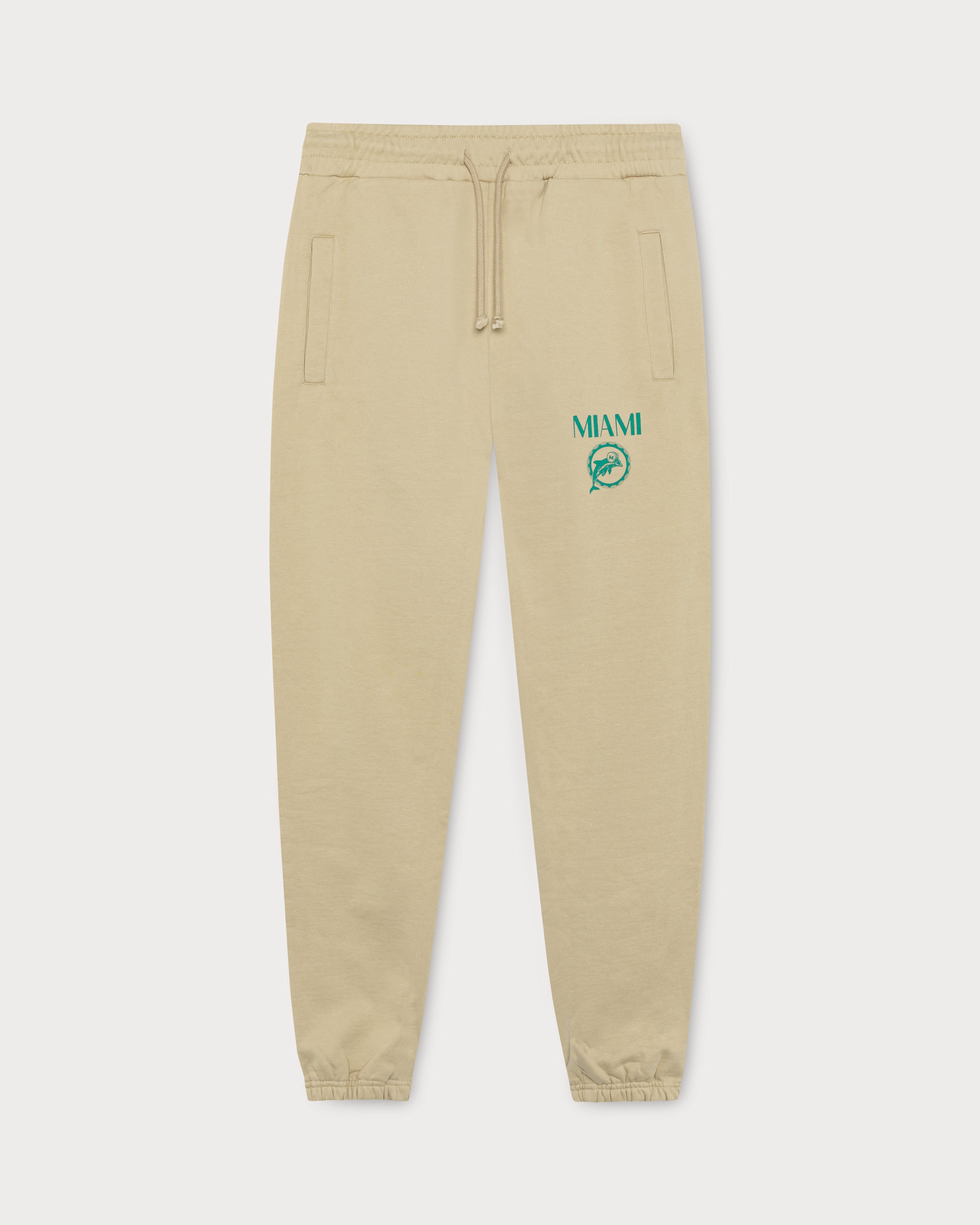 Ce pantalon de survêtement beige arbore le logo minimaliste des Dolphins en turquoise sur la cuisse gauche. L'étiquette en toile sur la poche arrière droite complète son look rétro.