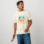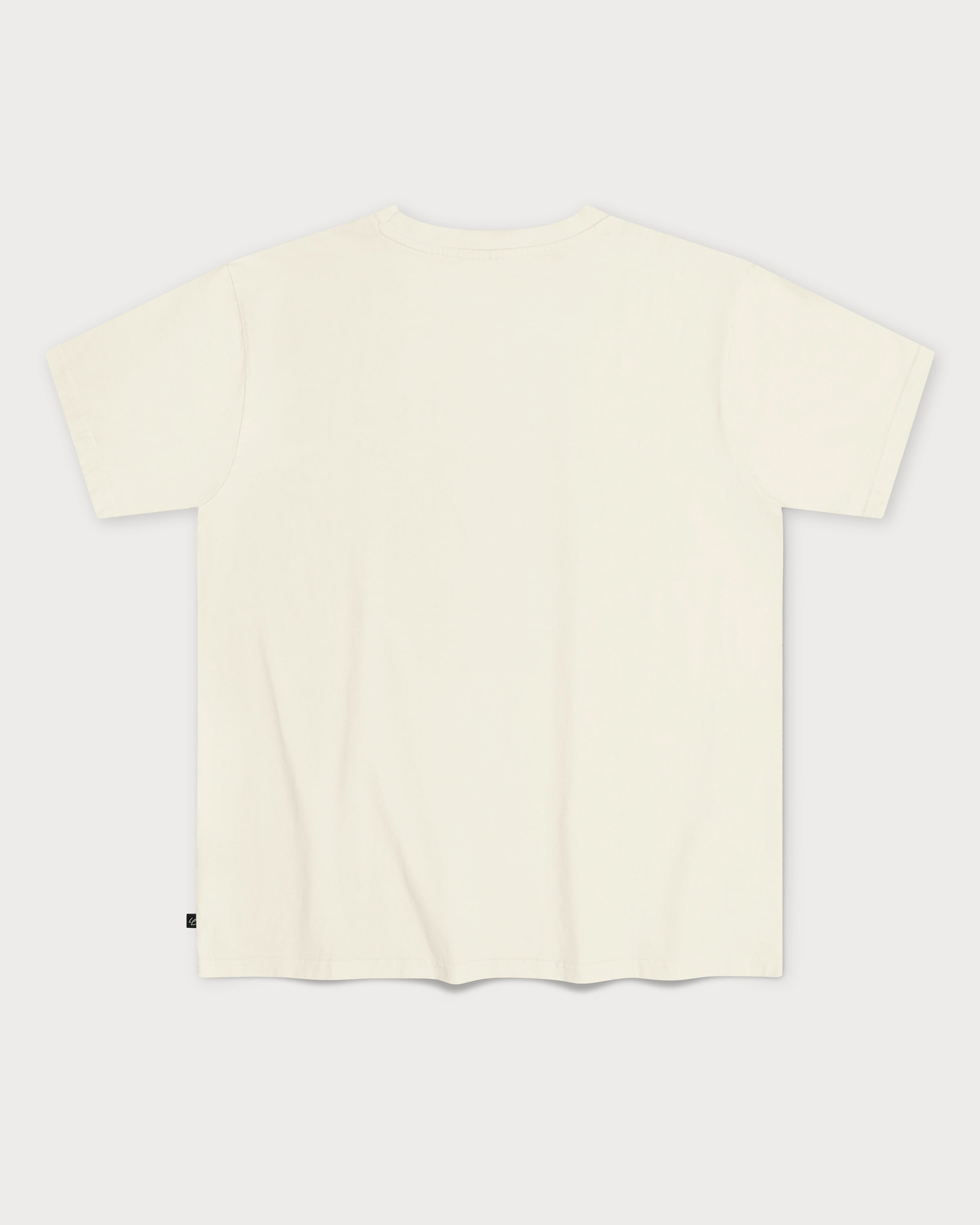 Le t-shirt présente une coupe carrée et pèse 220 g/m². Daniel mesure 180 cm et porte une taille L.
