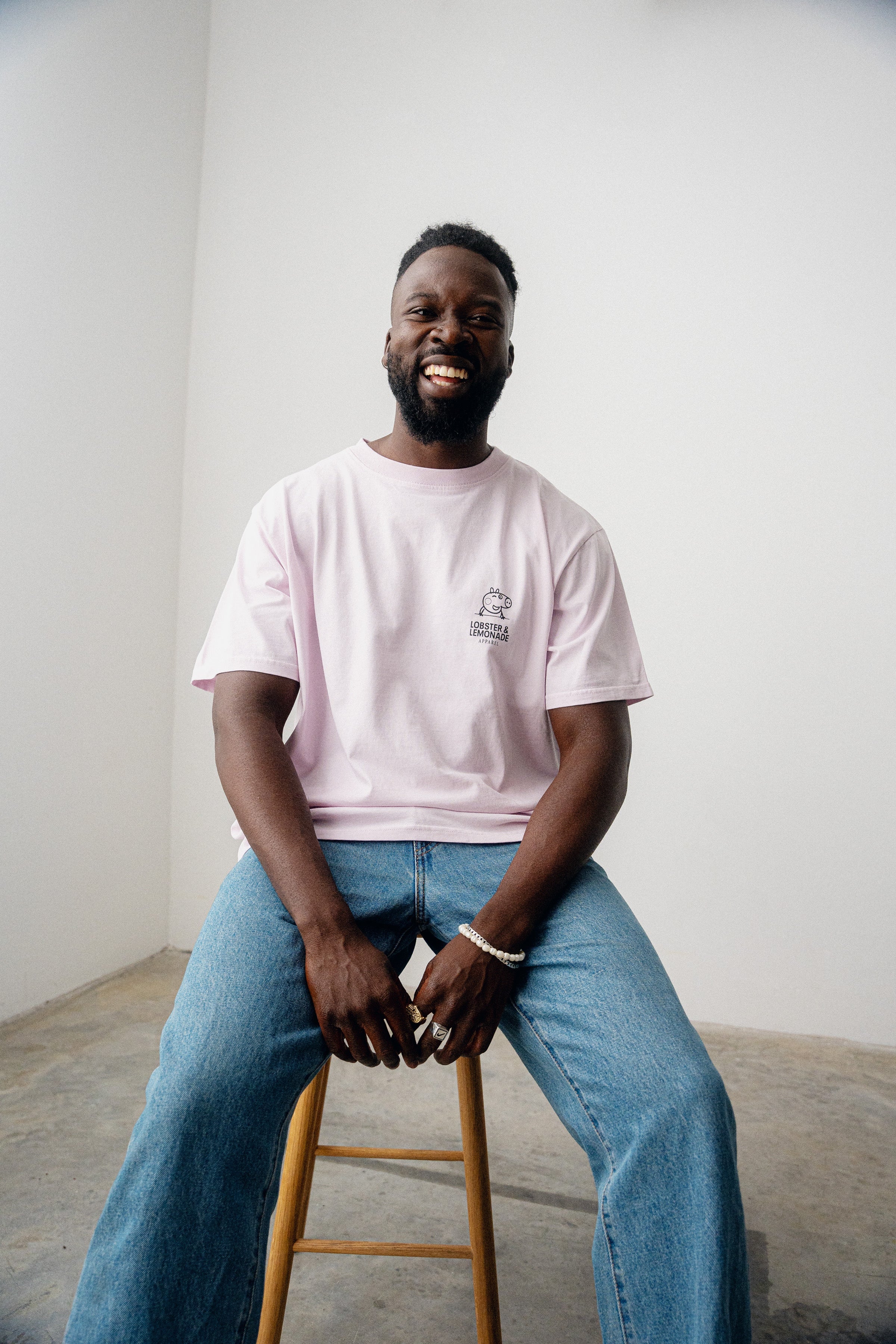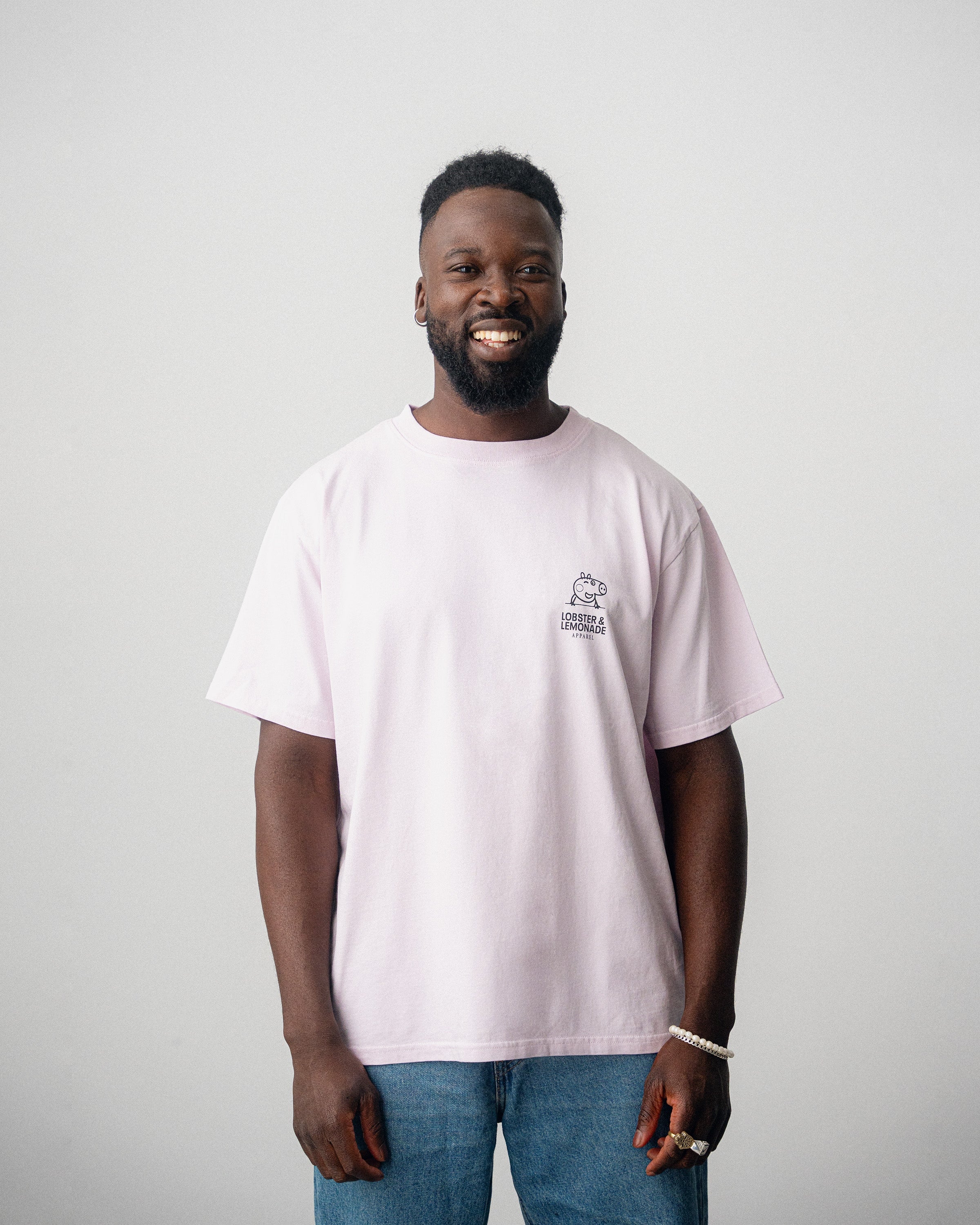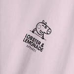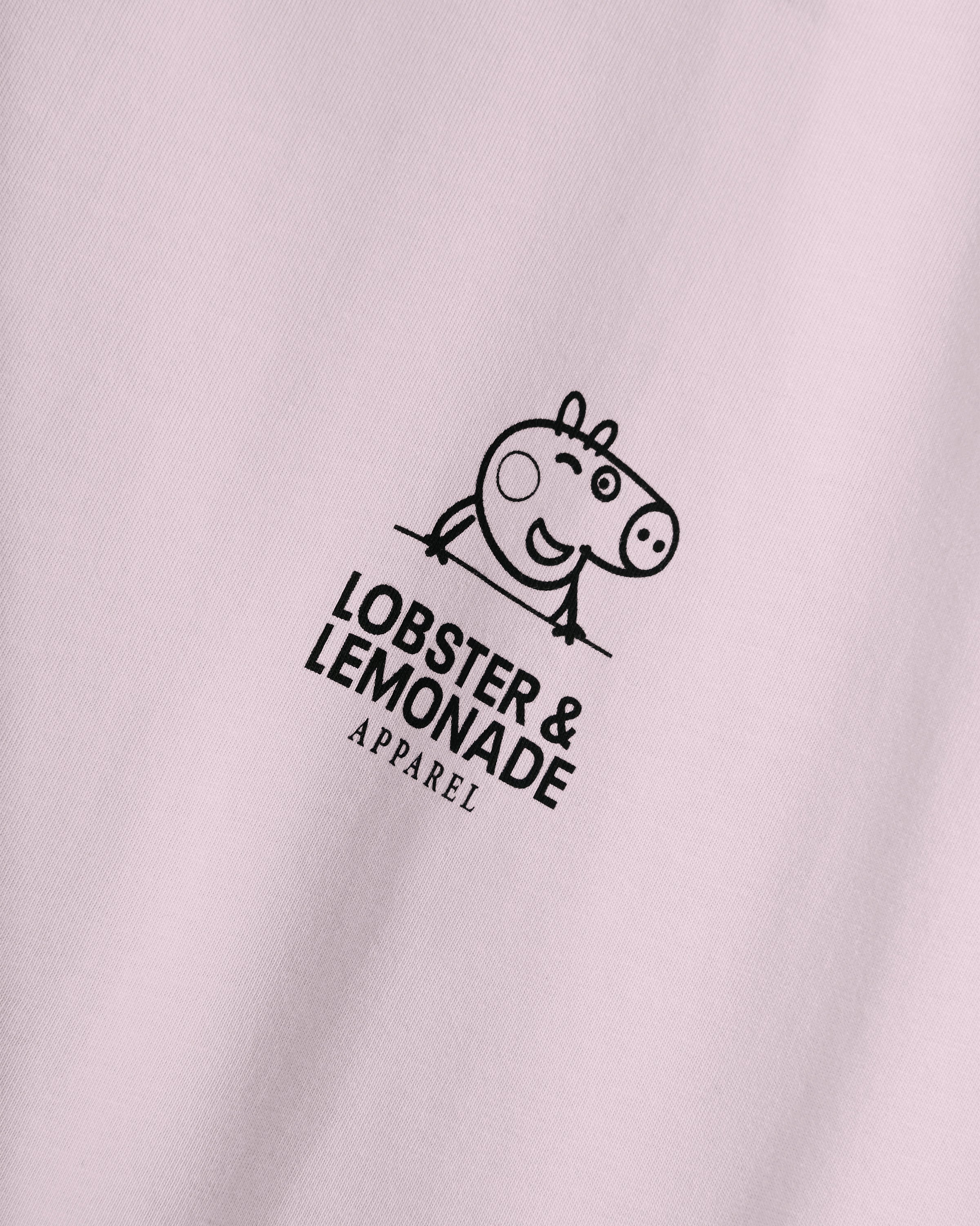 Le devant du t-shirt rose arbore un imprimé Peppa Pig discret sur la poitrine gauche. L'inscription « Lobster & Lemonade » complète le look.
