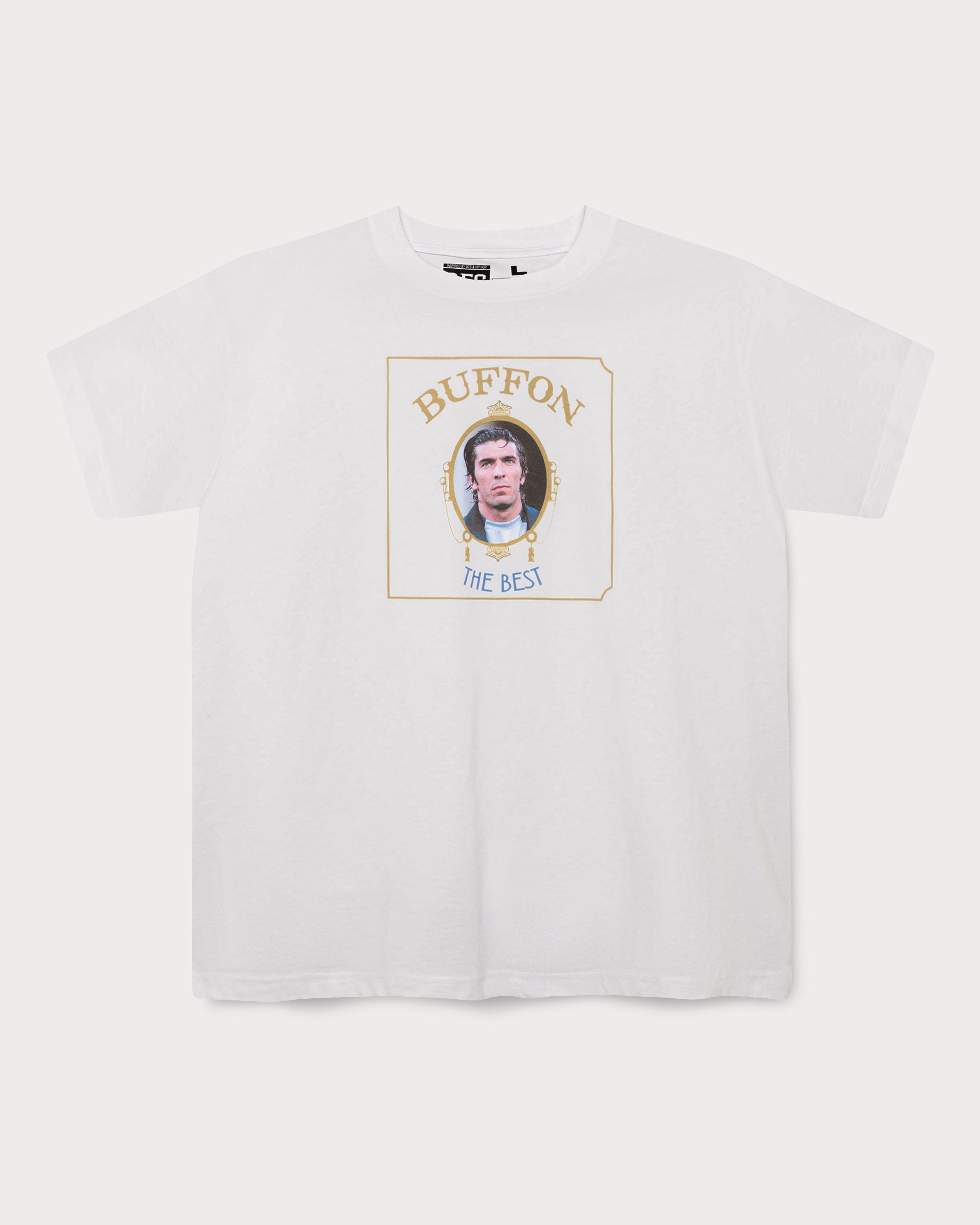 Ce t-shirt blanc représente Gianluigi Buffon, inspiré de la pochette légendaire de « The Chronic » de Dr. Dre. Marque : Retro Football Gang