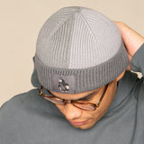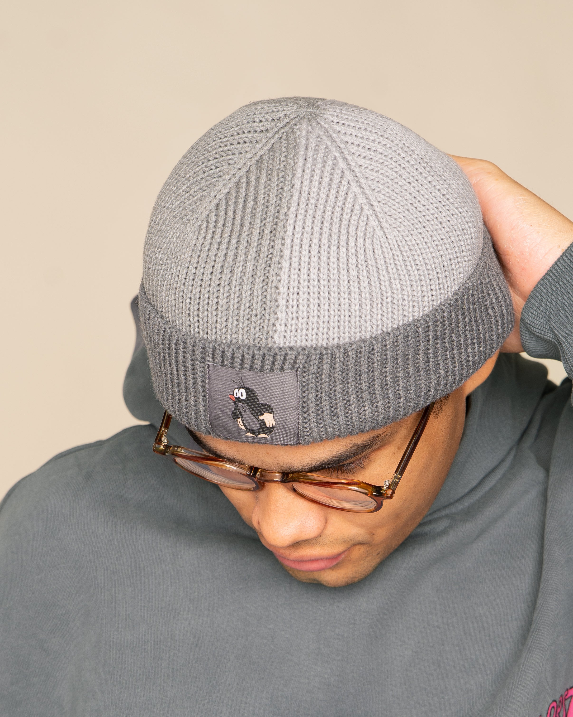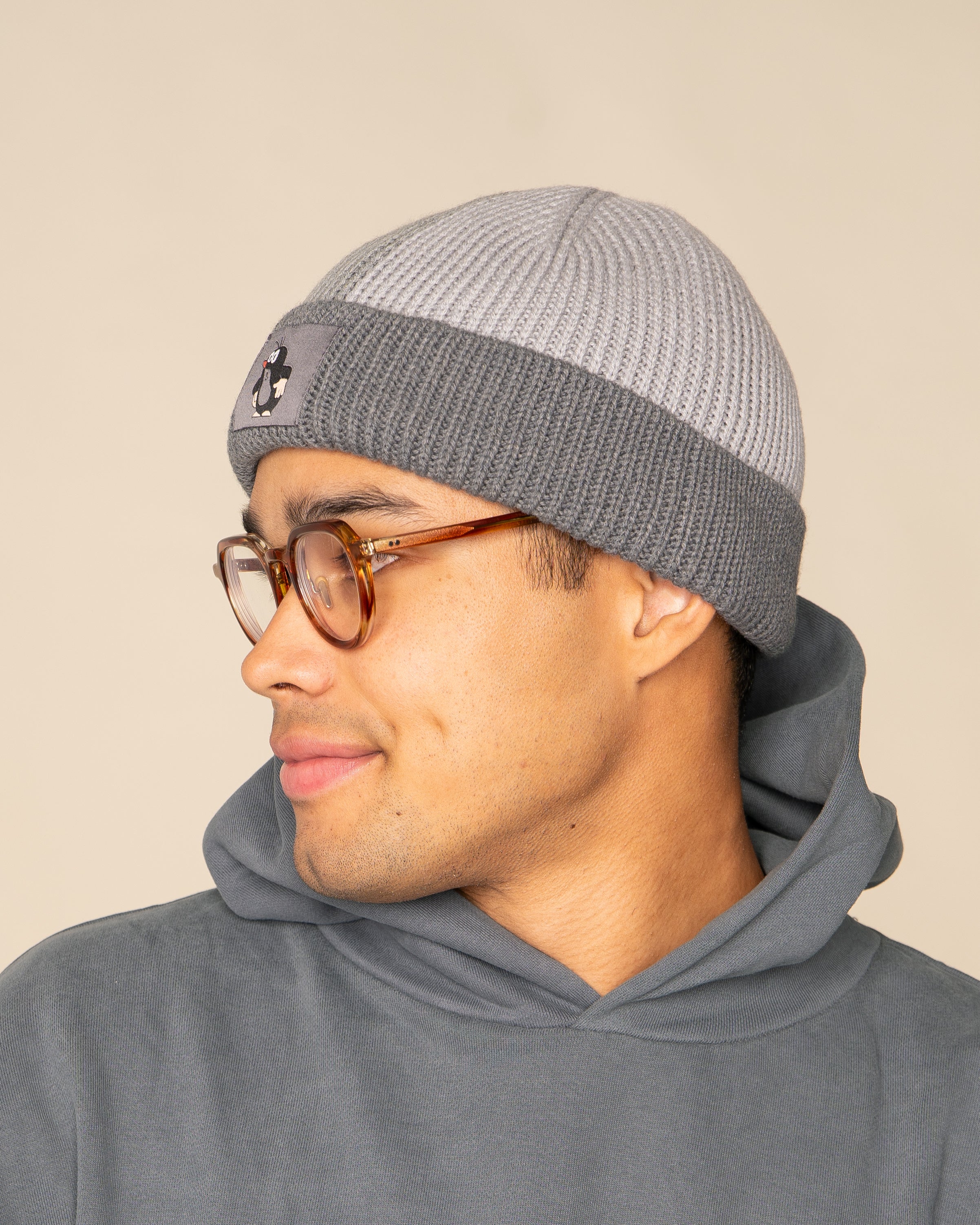 Le bonnet Docker arbore un délicat volant orné d'un grain de beauté surprenant. L'association astucieuse de trois nuances de gris en fait un véritable accroche-regard.