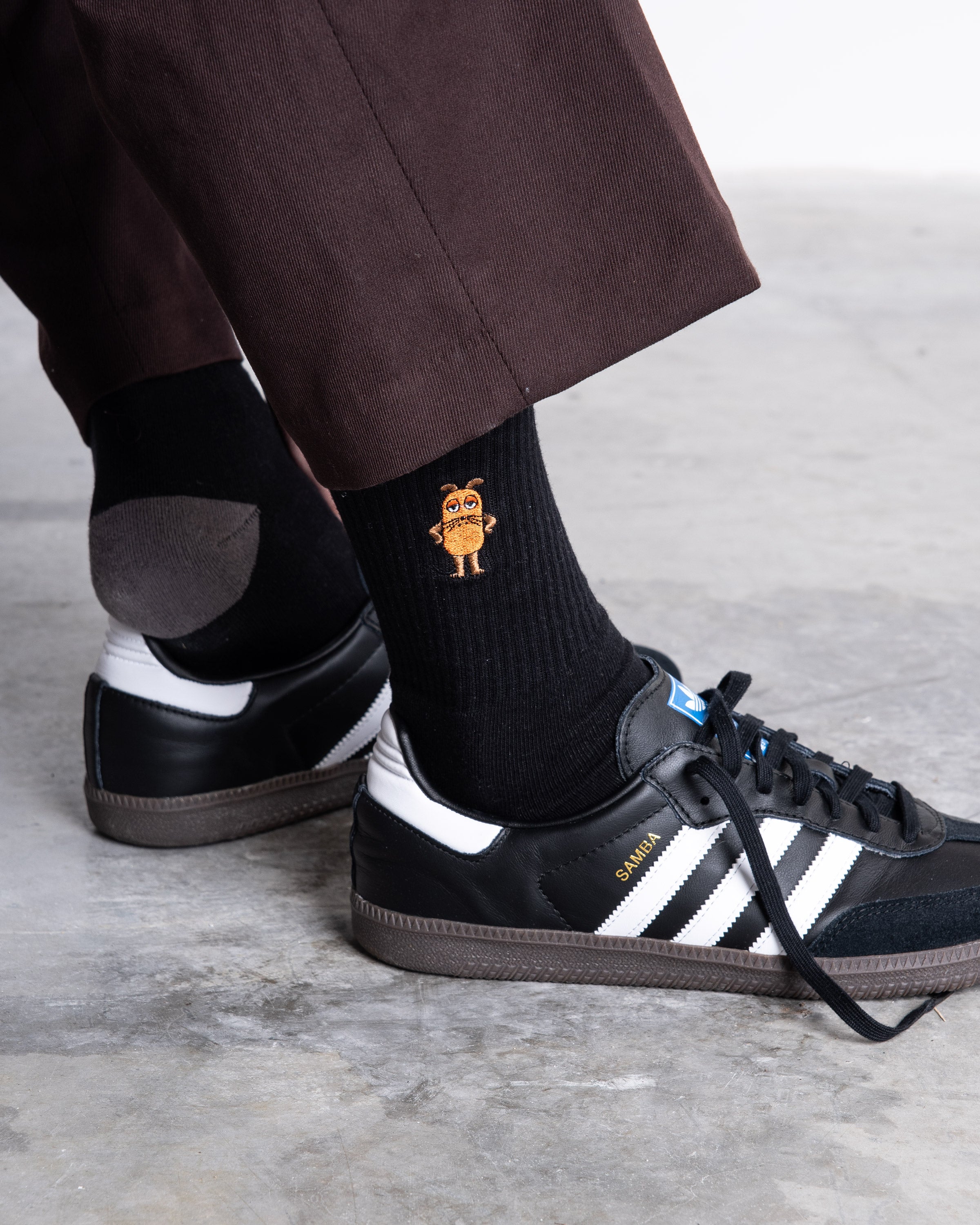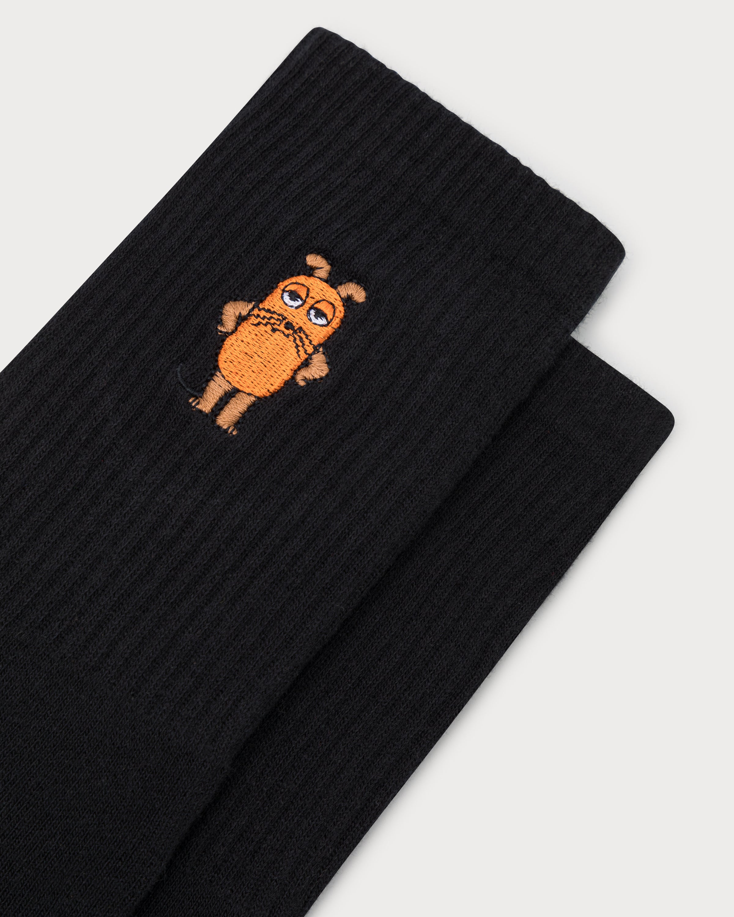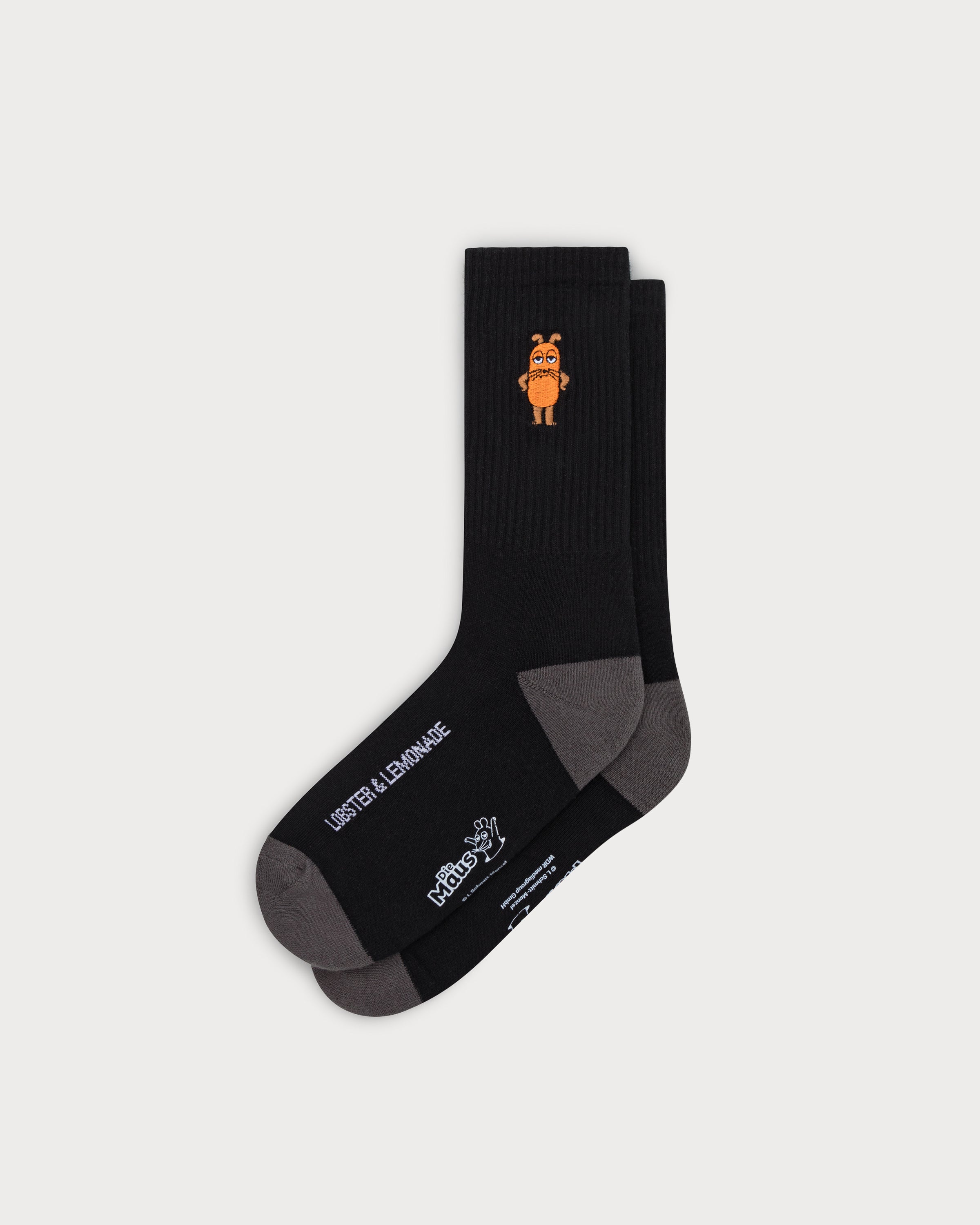 Ces chaussettes de sport gris foncé arborent une délicate broderie représentant une souris visiblement abattue au-dessus de la cheville. Dans la collection Souris et ses amis, nous réinterprétons des personnages célèbres des séries cultes « L'Envoyé de la Souris » et « Le Petit Maulwurf » pour un look streetwear moderne.