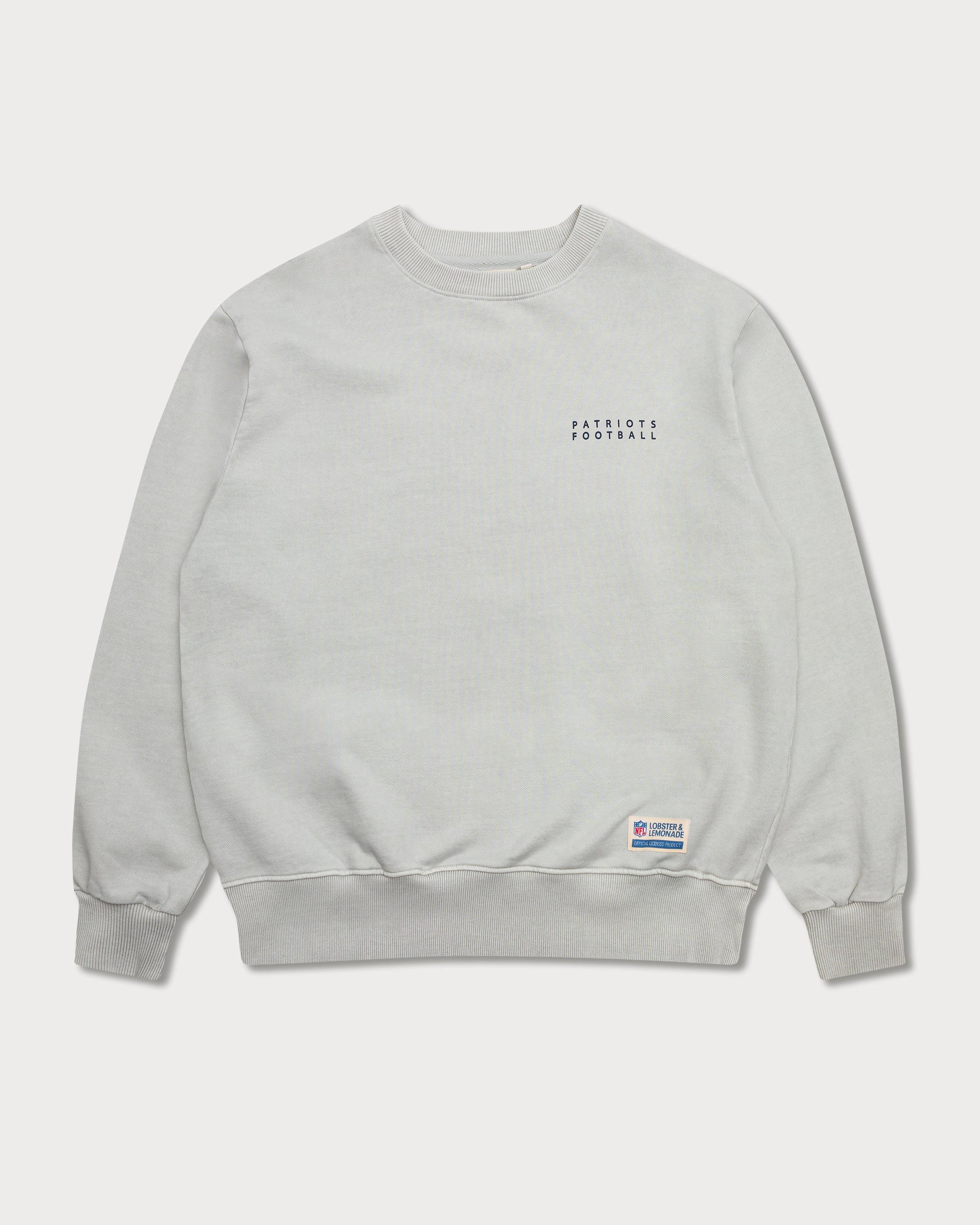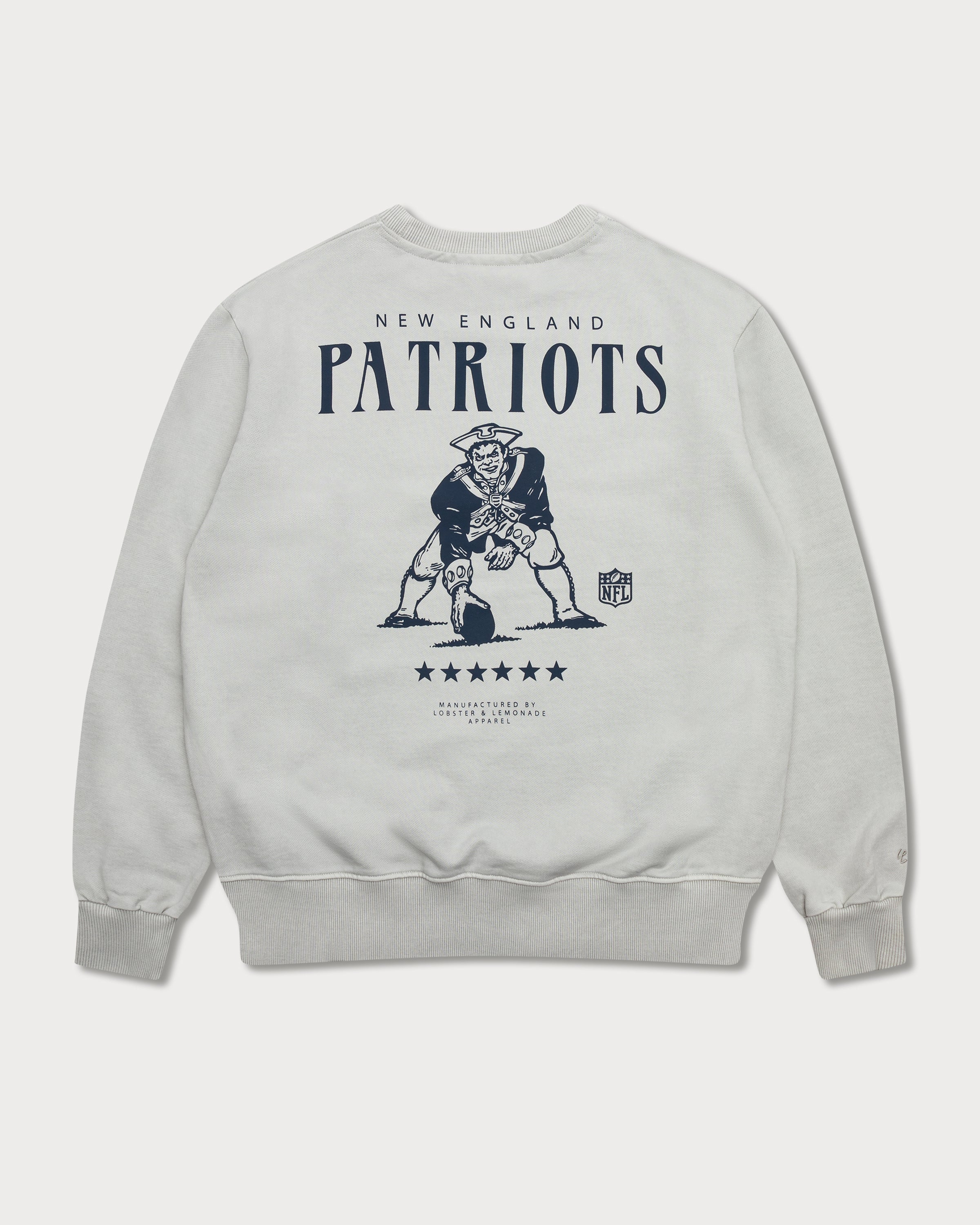 Ce sweat-shirt gris teint en pièce arbore le logo vintage des Patriots dans un grand imprimé couleur pétrole au dos, avec des étoiles représentant le nombre de championnats remportés. L'imprimé football des Patriots sur la poitrine gauche et l'étiquette tissée en toile à la taille complètent son look rétro.