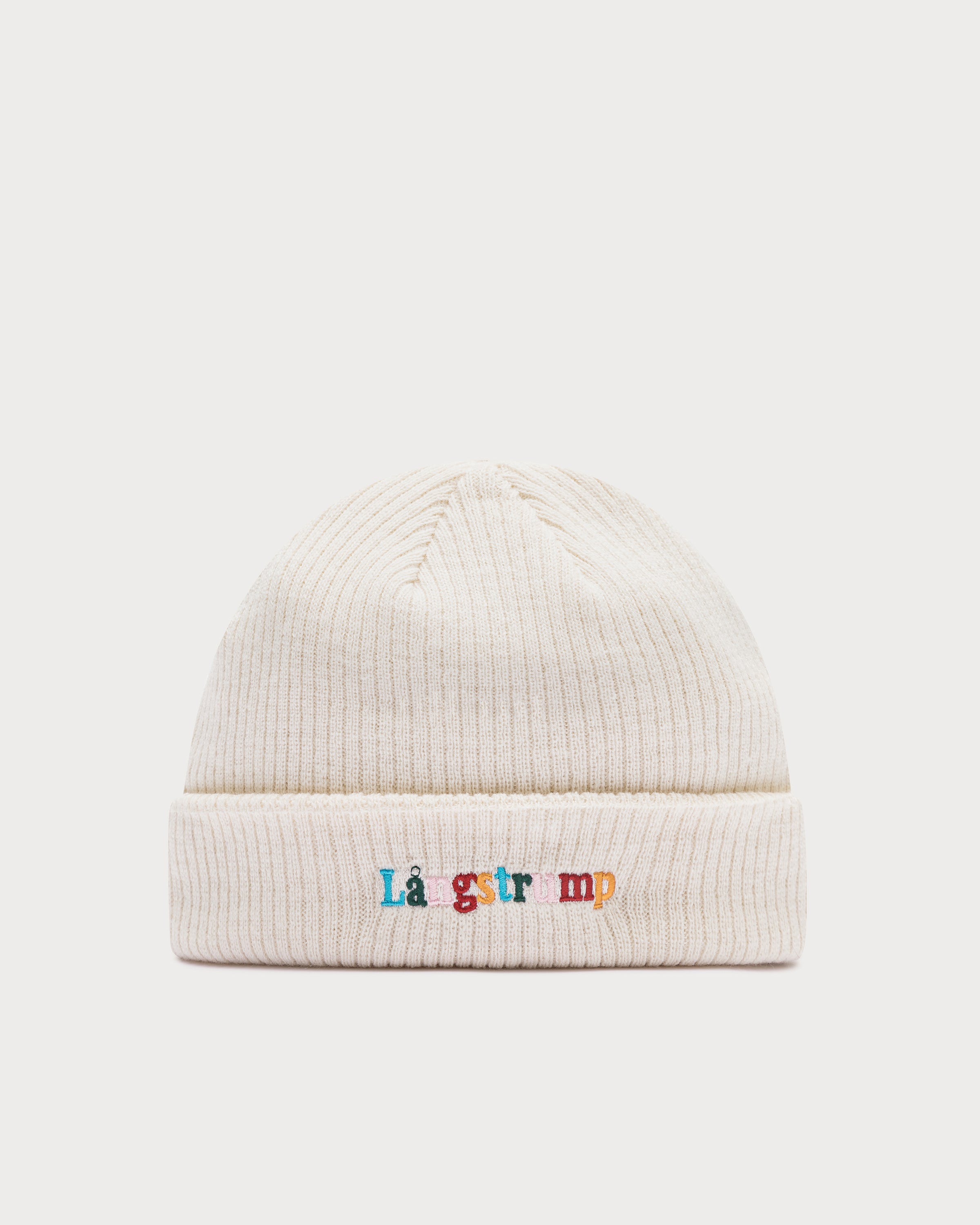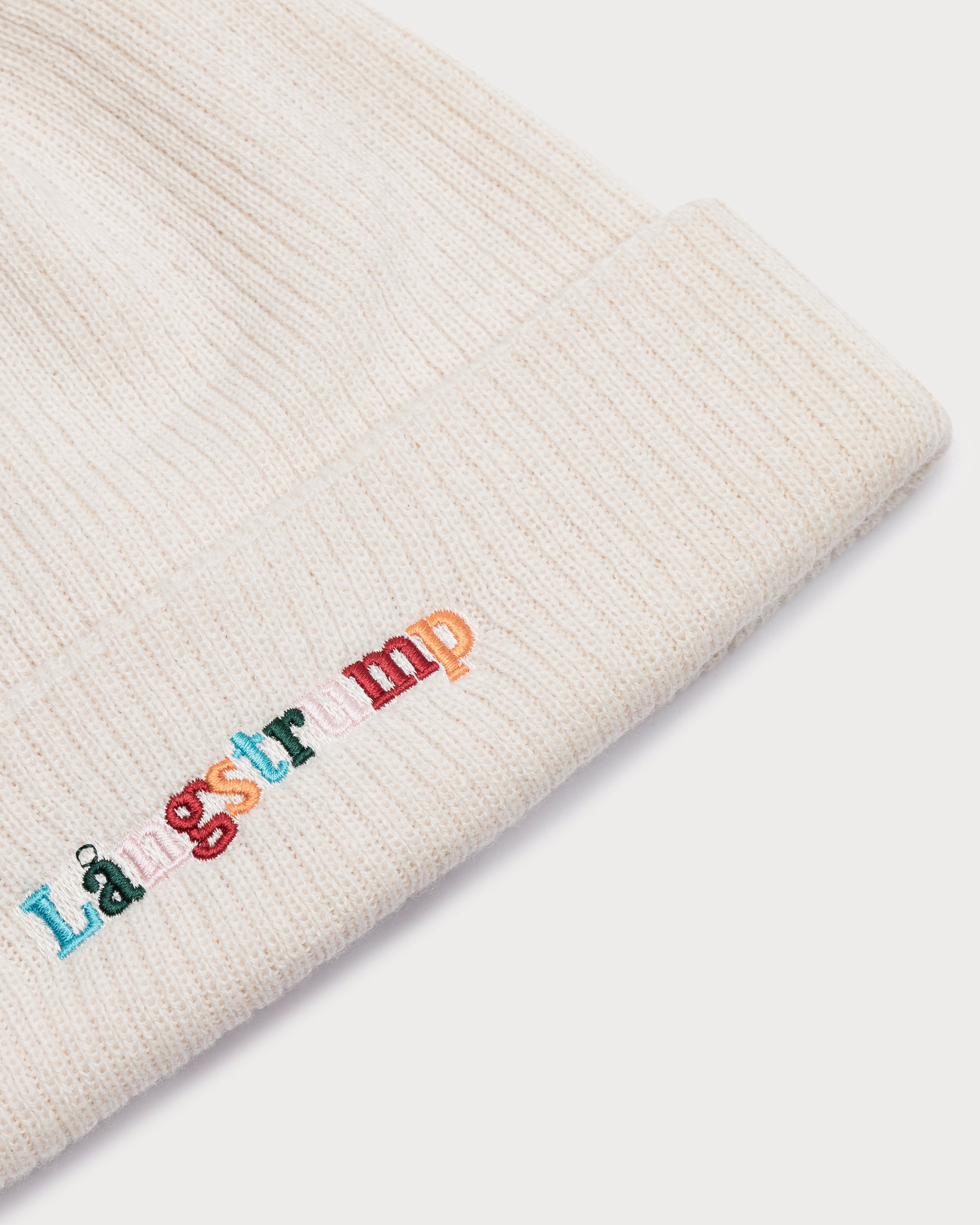 Le devant de ce bonnet pêcheur crème arbore le logo coloré de Långstrump, tissé sur une étiquette. Avec la collection Långstrump, nous allions l'univers coloré de Fifi Brindacier au design scandinave classique.