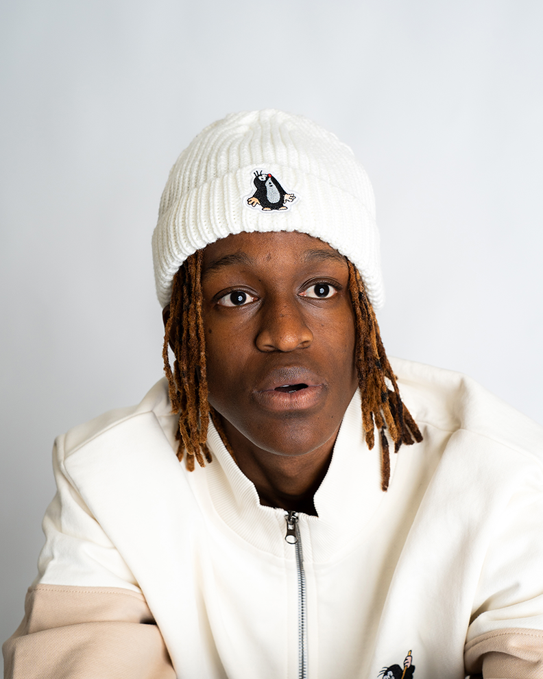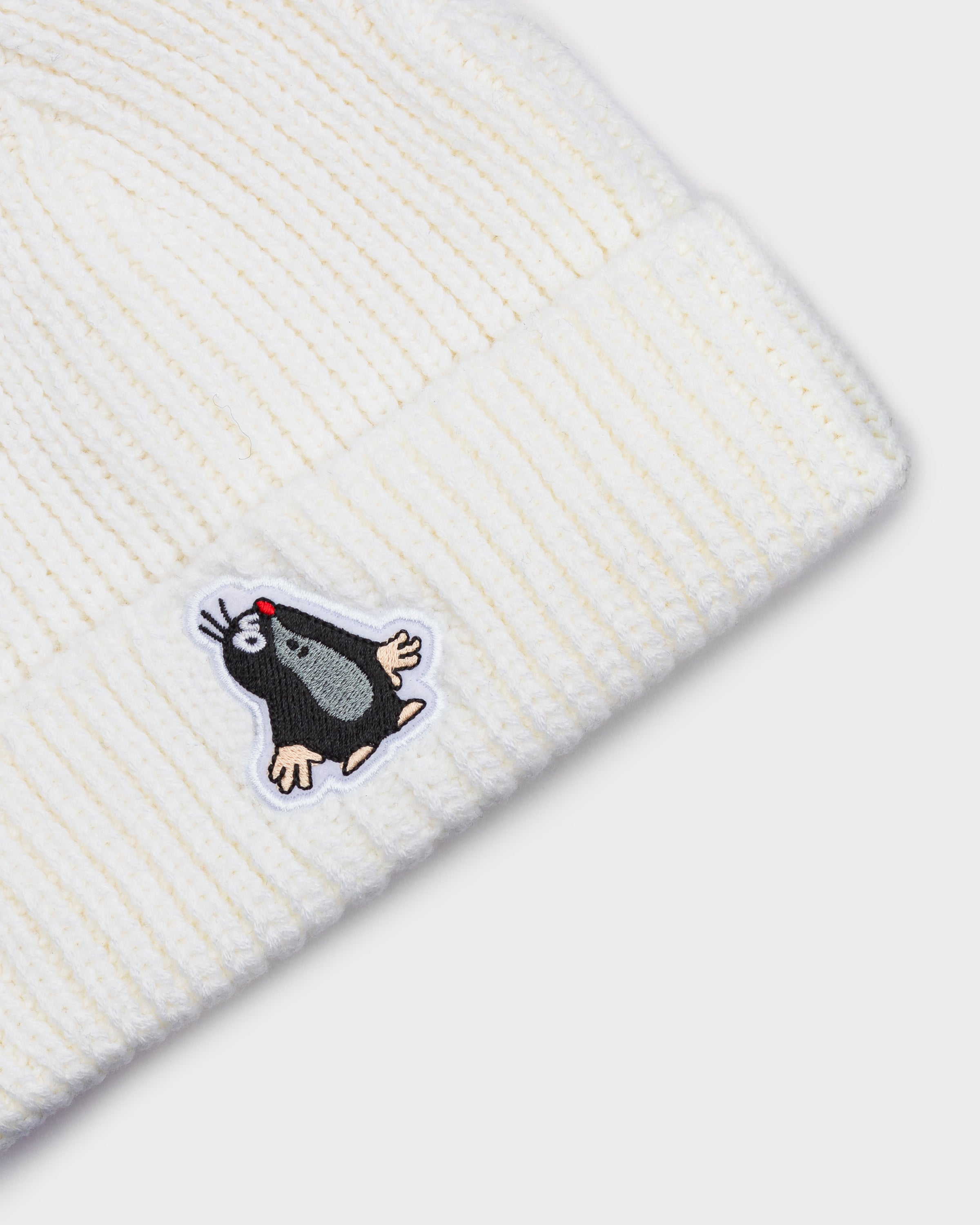 Ce bonnet de pêcheur couleur crème arbore une délicate broderie représentant Krtek la taupe, levant les yeux vers le ciel. Dans la collection Souris et ses amis, nous réinterprétons des personnages célèbres des séries cultes « L'Envoyé de la Maus » et « Le Petit Maulwurf » pour un look streetwear moderne.