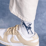 La chaussette de sport blanche présente un logo vintage des Colts tissé au-dessus de la cheville, représentant un cheval cabré des premiers jours de l'équipe.