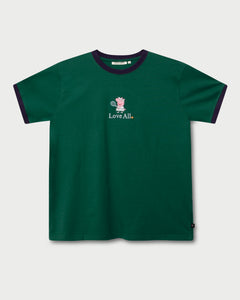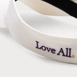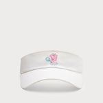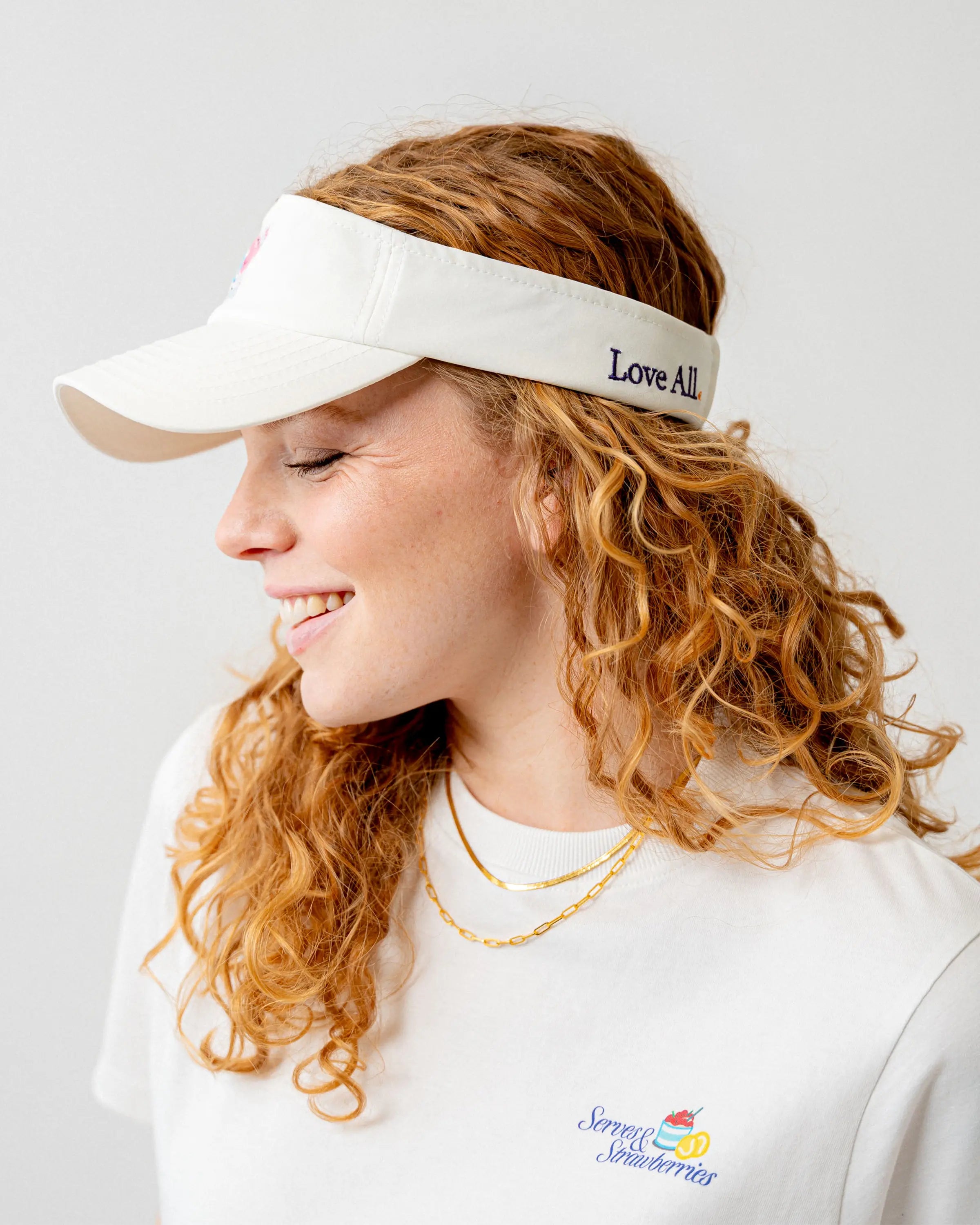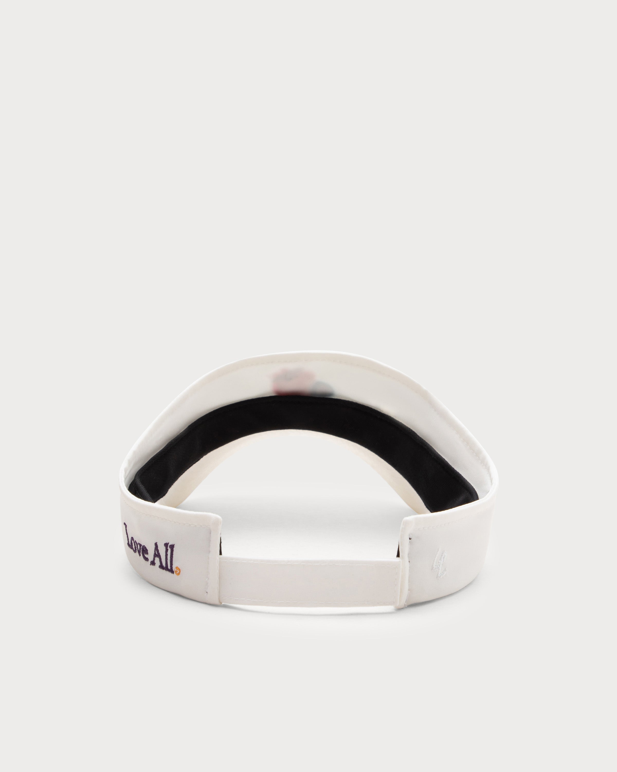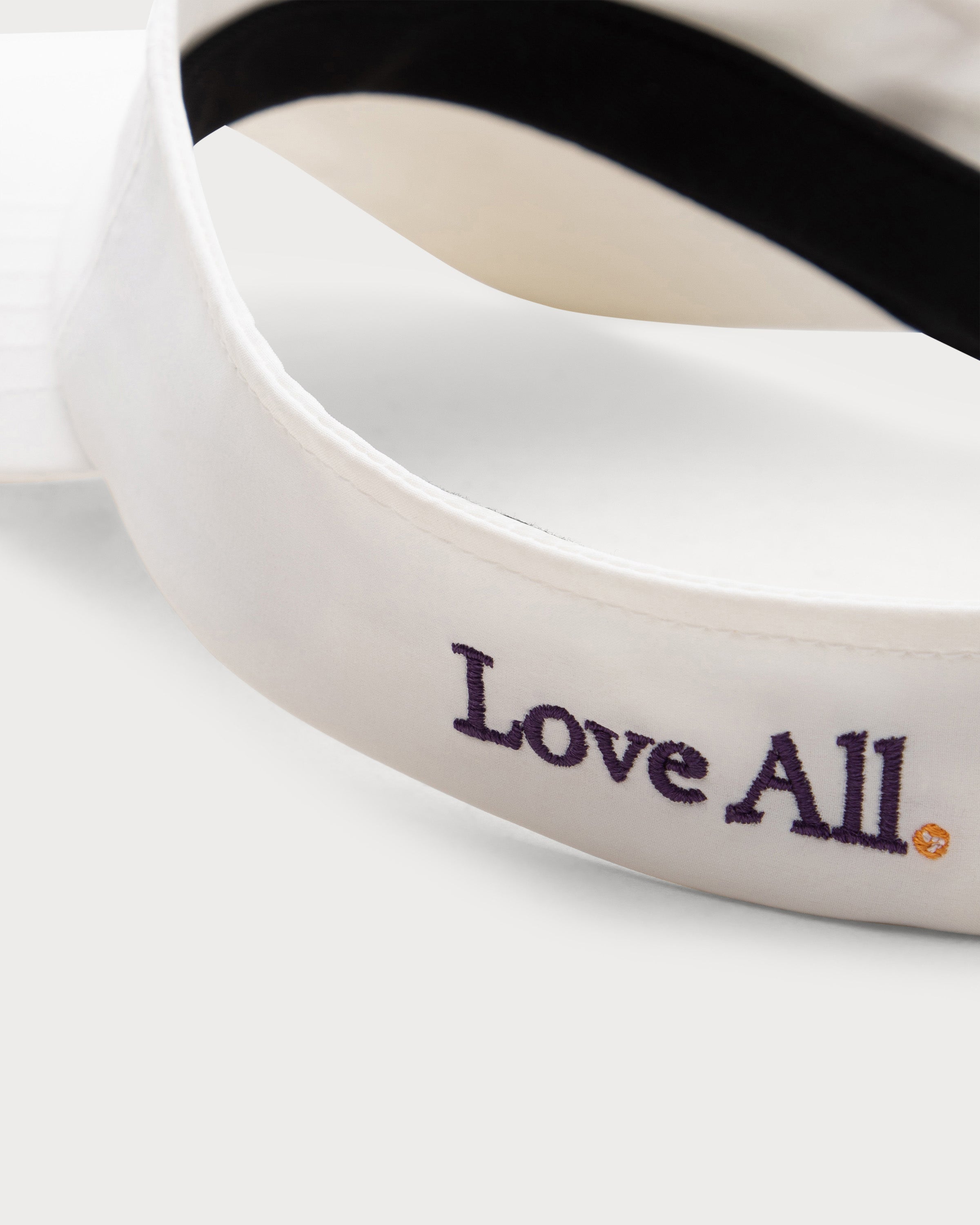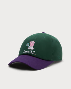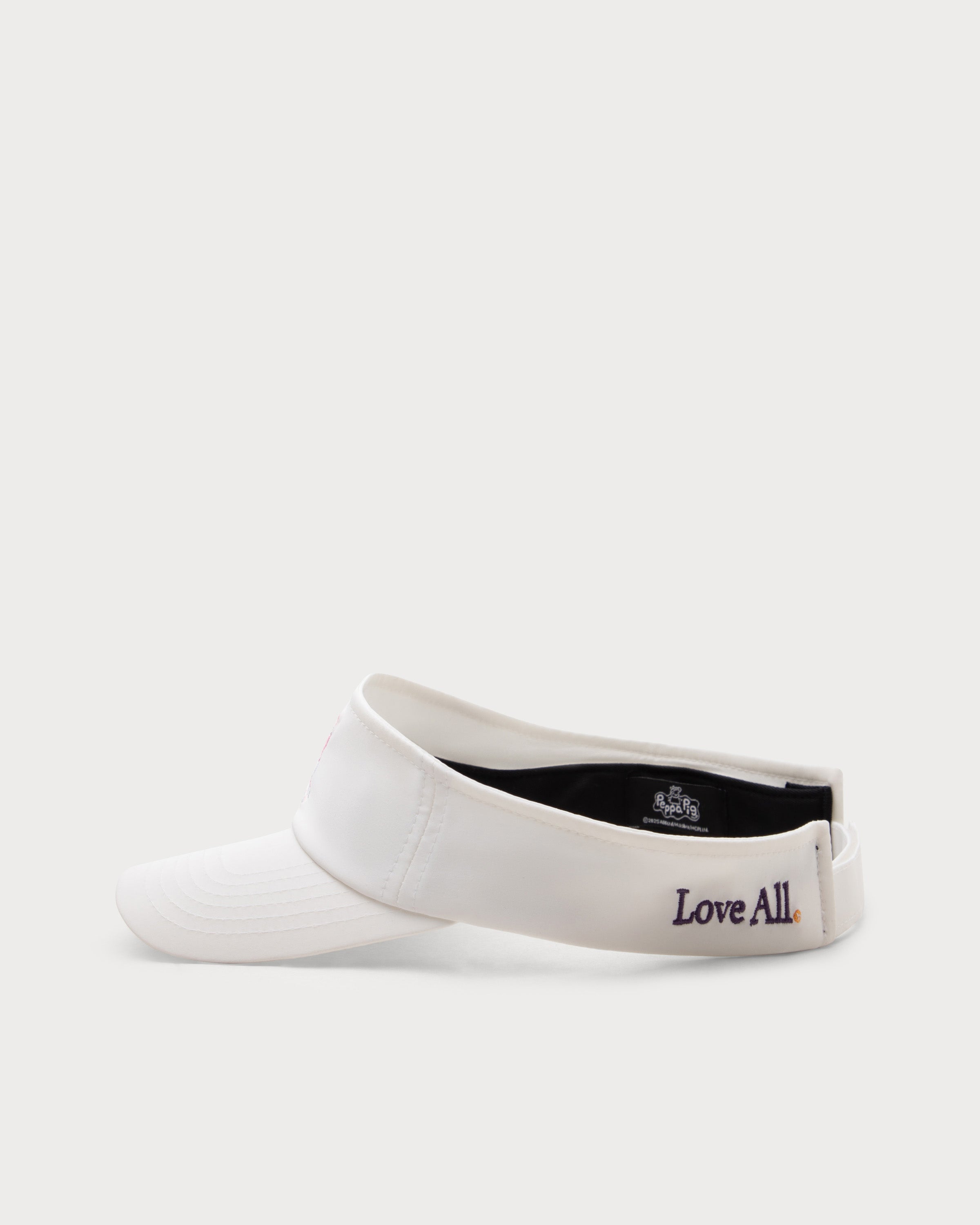 Peppa Pig en tenue de tennis orne l'avant de cette visière blanche en broderie de haute qualité. L'inscription latérale "Love All" et la petite balle de tennis complètent le look rétro sportif et font de la visière le compagnon idéal pour les journées ensoleillées sur le court.