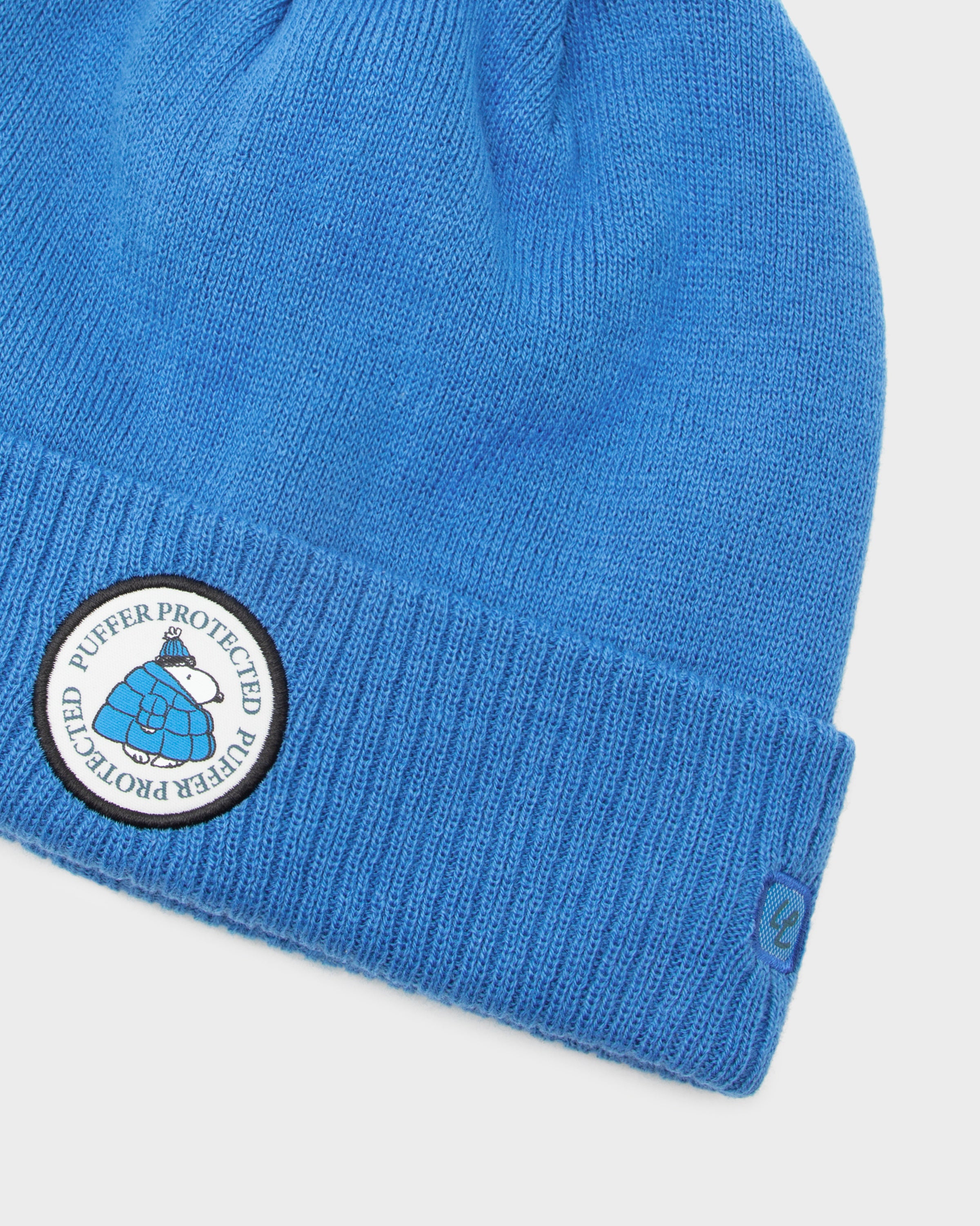 Ce bonnet bleu arbore une étiquette tissée sur le devant représentant Snoopy bien emmitouflé dans une doudoune. Sa visière côtelée assure un maintien optimal et un style classique.