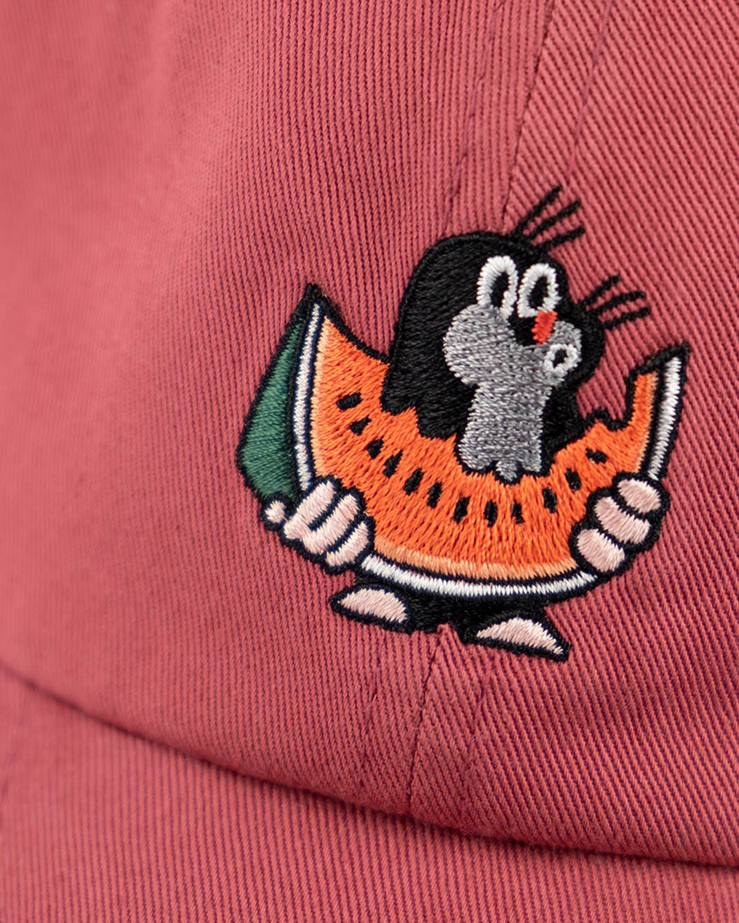 Der feine Stick der Dad Cap zeigt den kleinen Maulwurf beim Essen einer Melone. Auf dem Strap ist das Muster einer Wassermelone gedruckt. In der Maus & Friends Collection reininterpretieren wir bekannte Charaktere aus den Kult-Serien „Die Sendung mit der Maus“ und „Der Kleine Maulwurf“ für einen modernen Streetwear-Look.