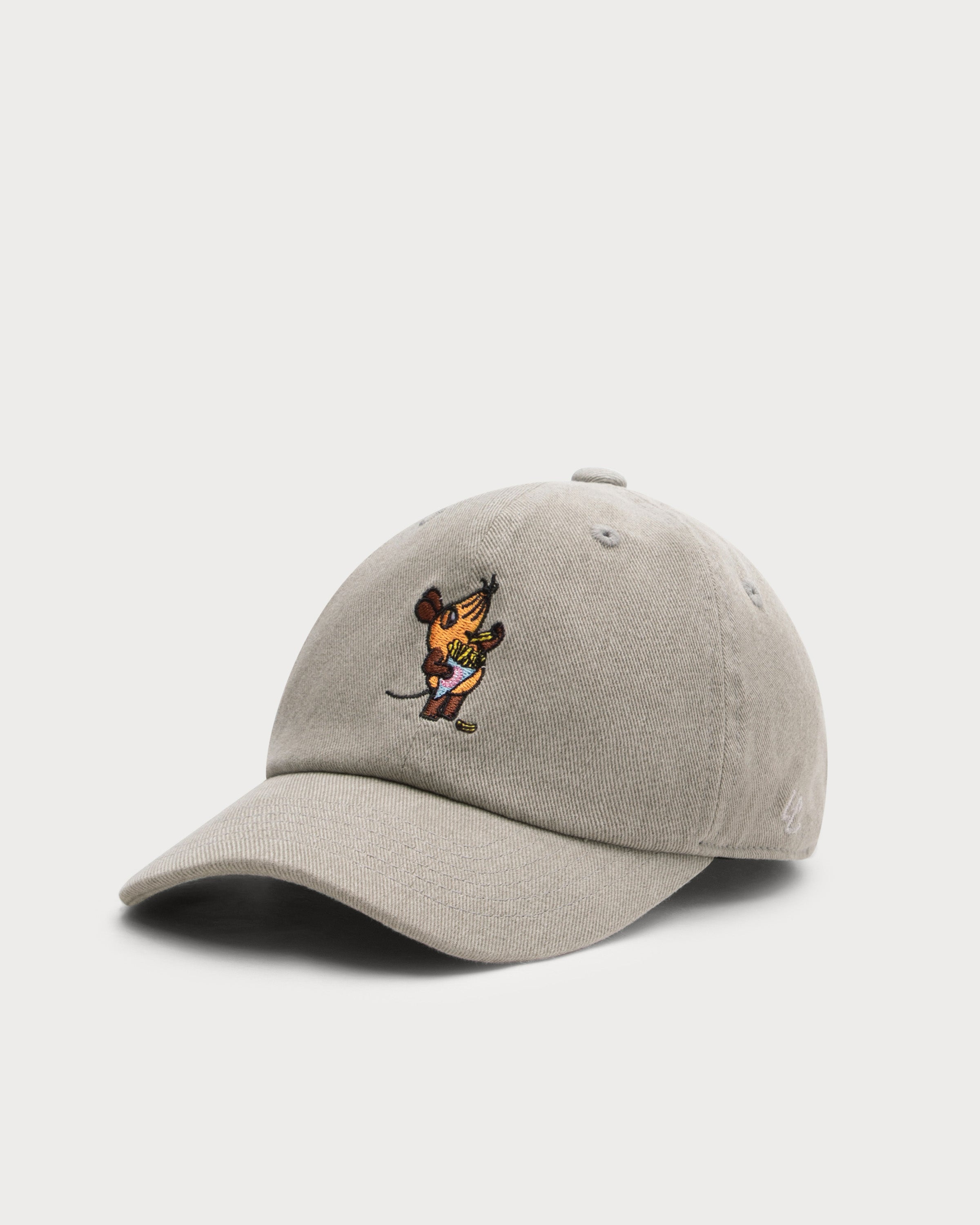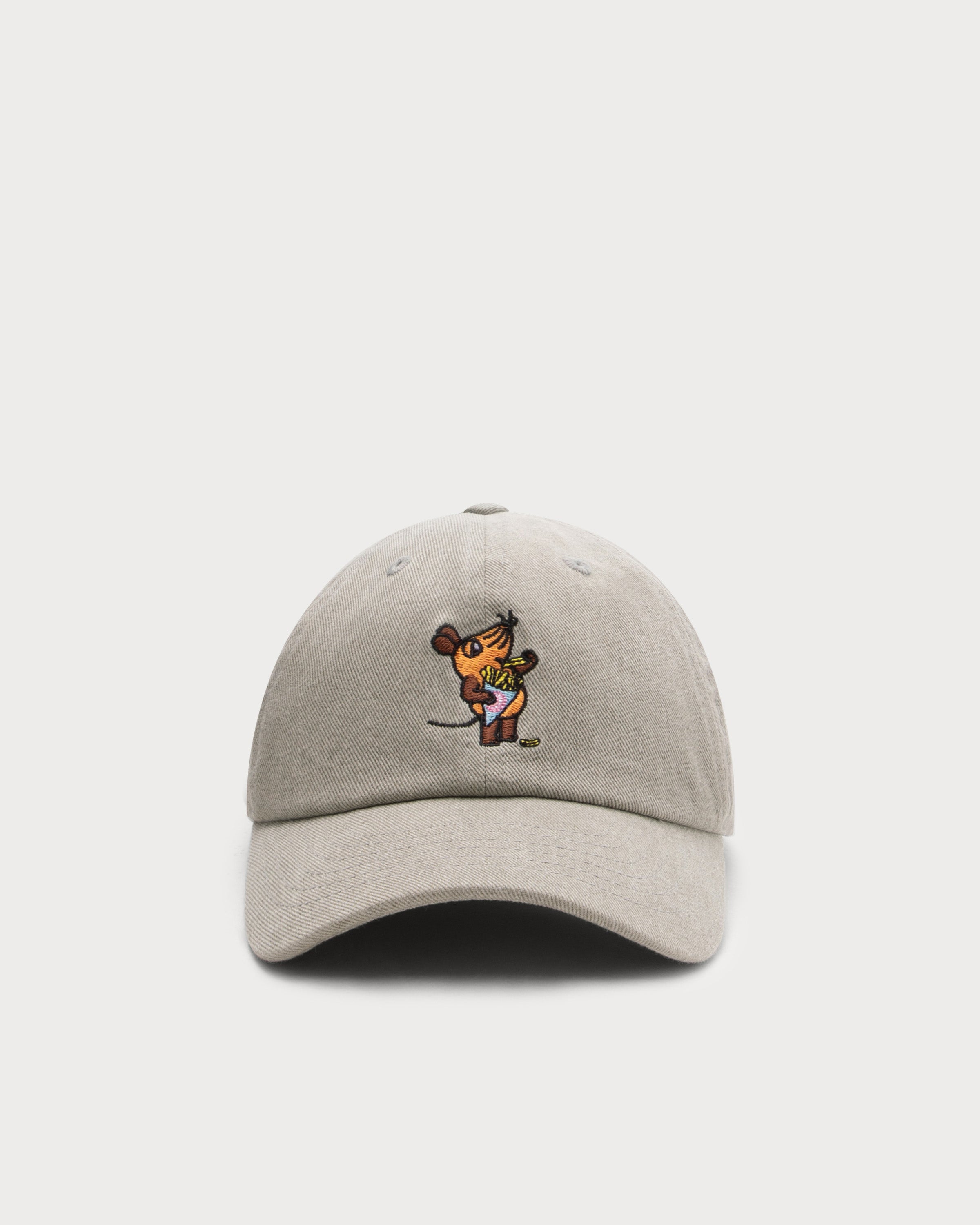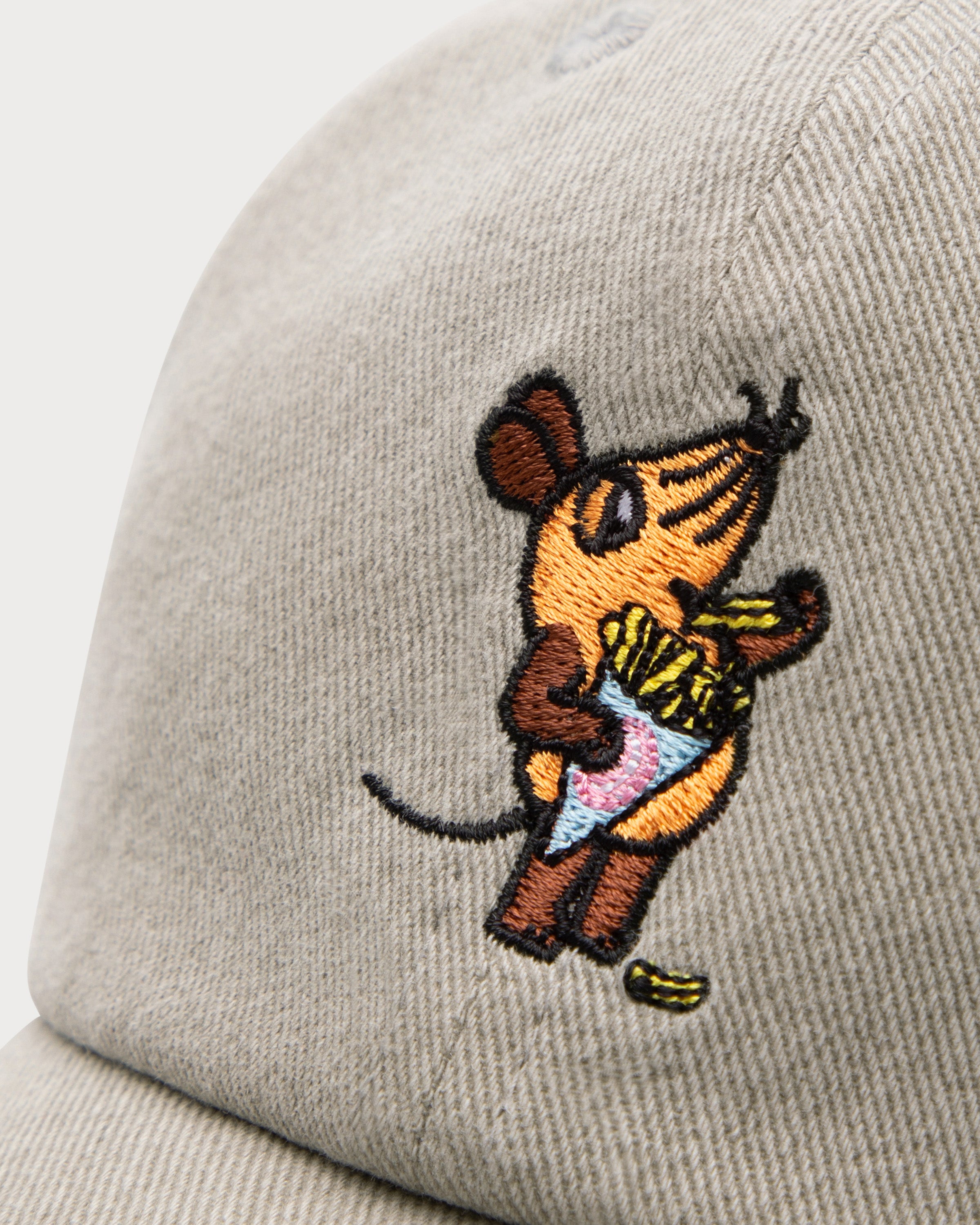 Die Maus mit einer Portion Pommes in der Hand ziert als hochwertiger Stick die Front dieser grauen Cap. Das Washed-out Finish sorgt dabei für einen authentischen Retro-Look und rundet das Design perfekt ab.