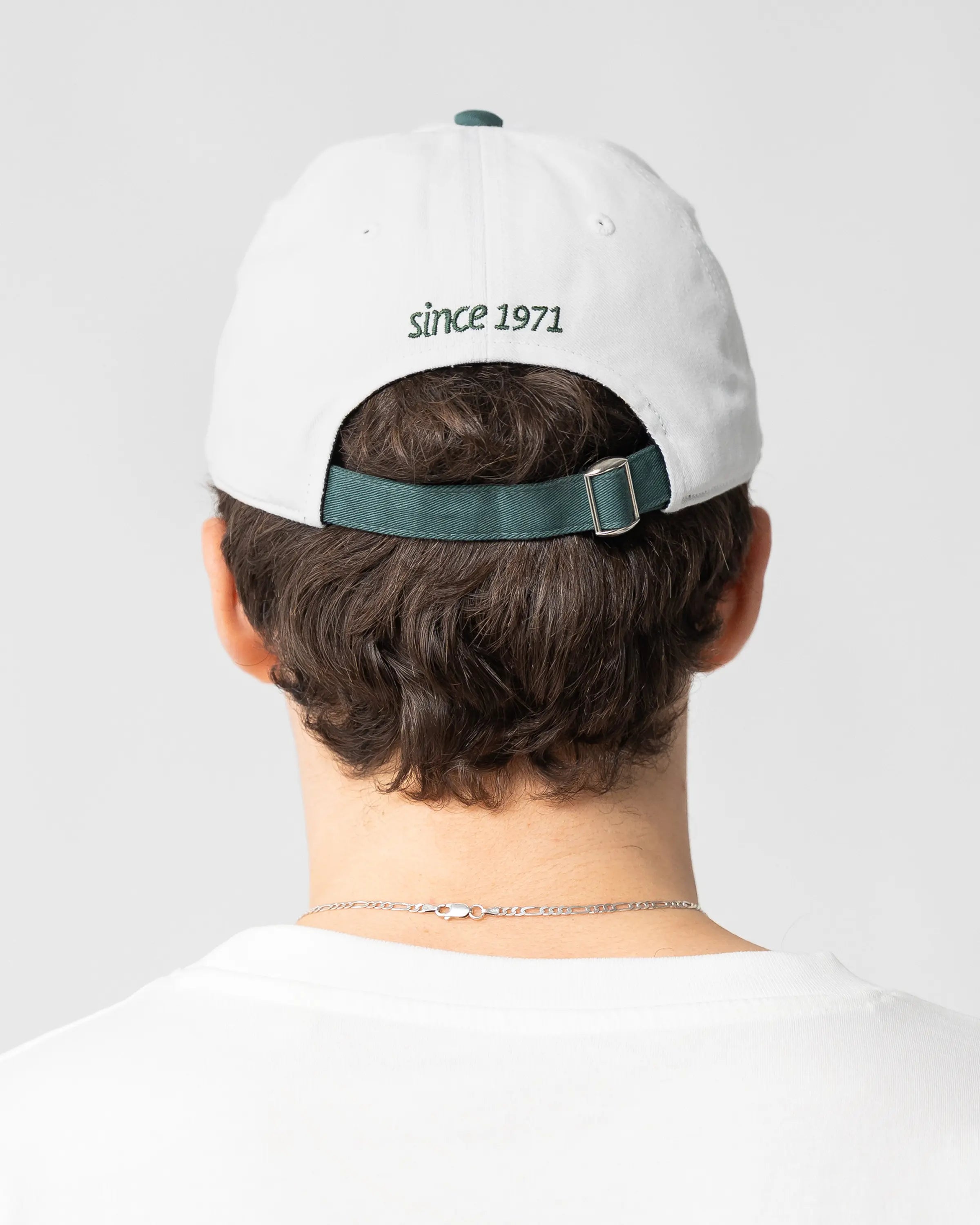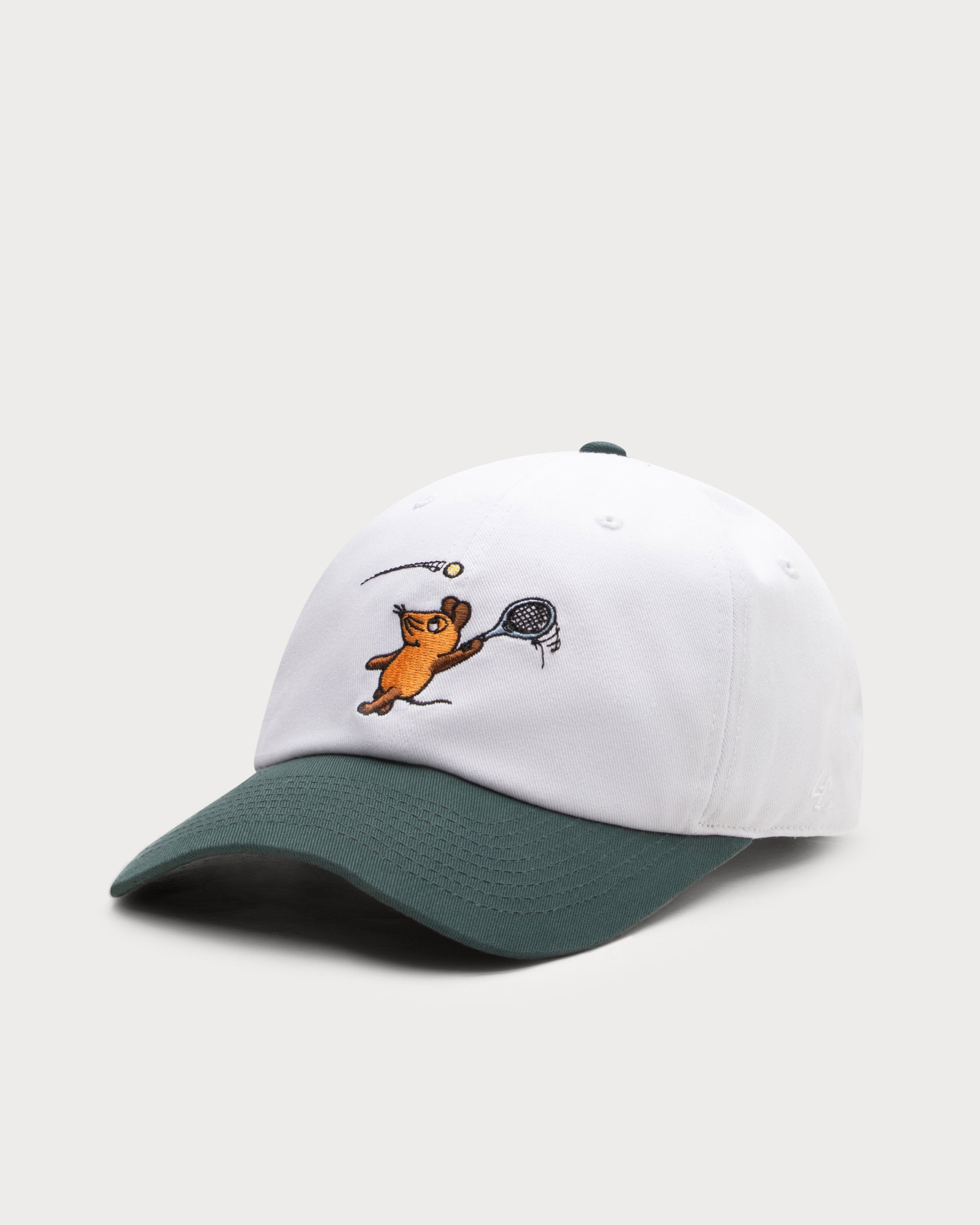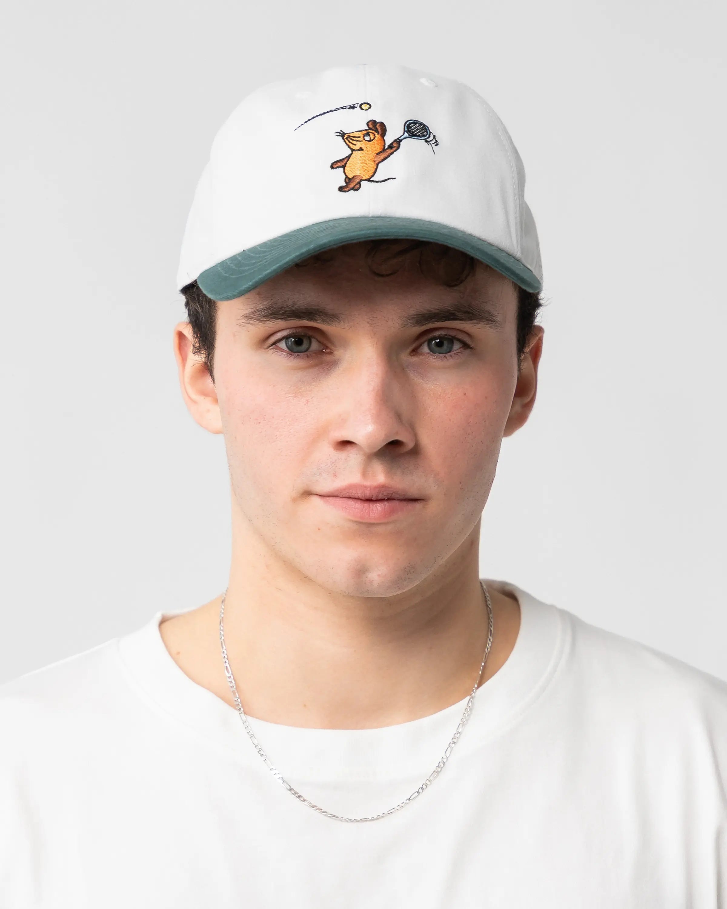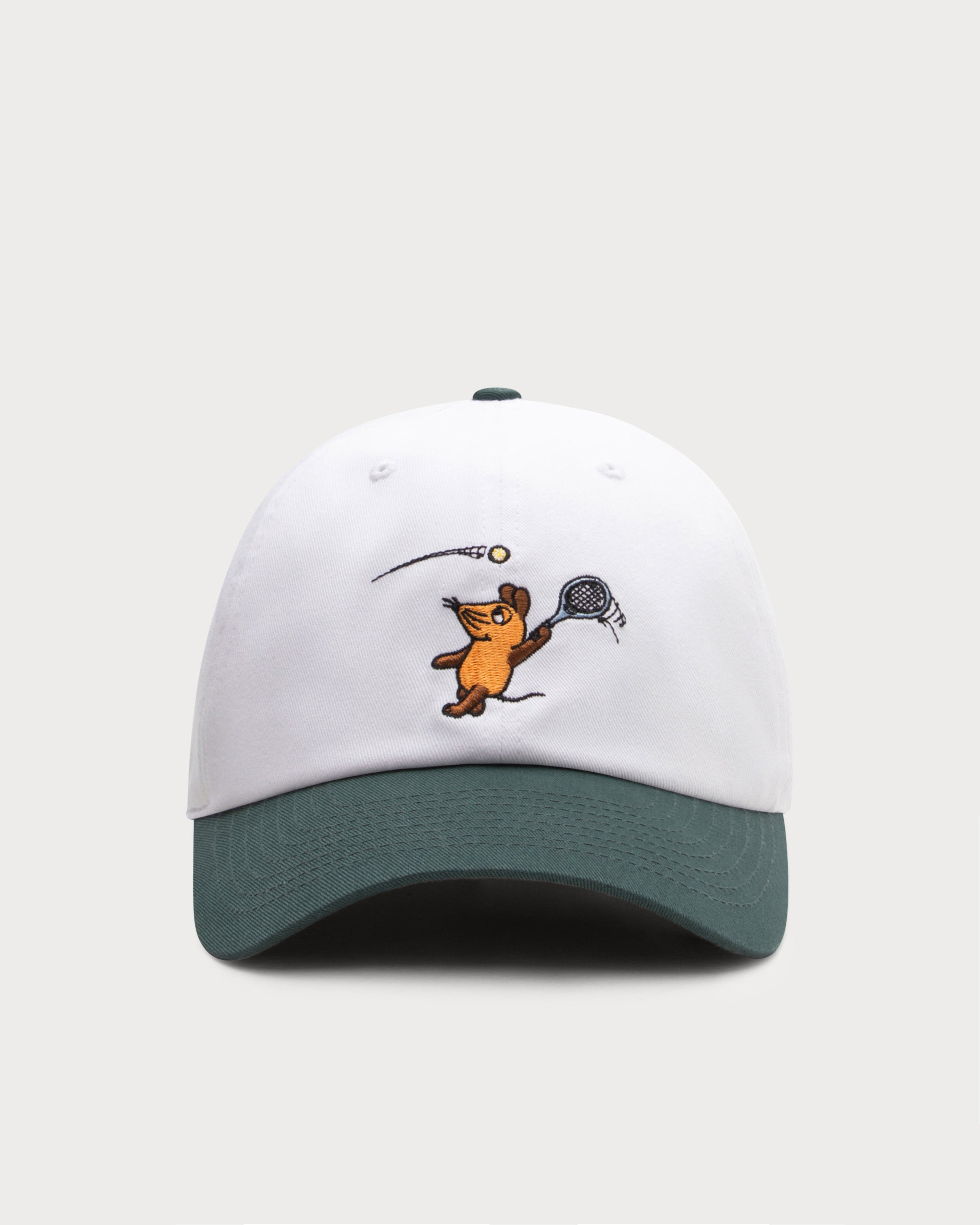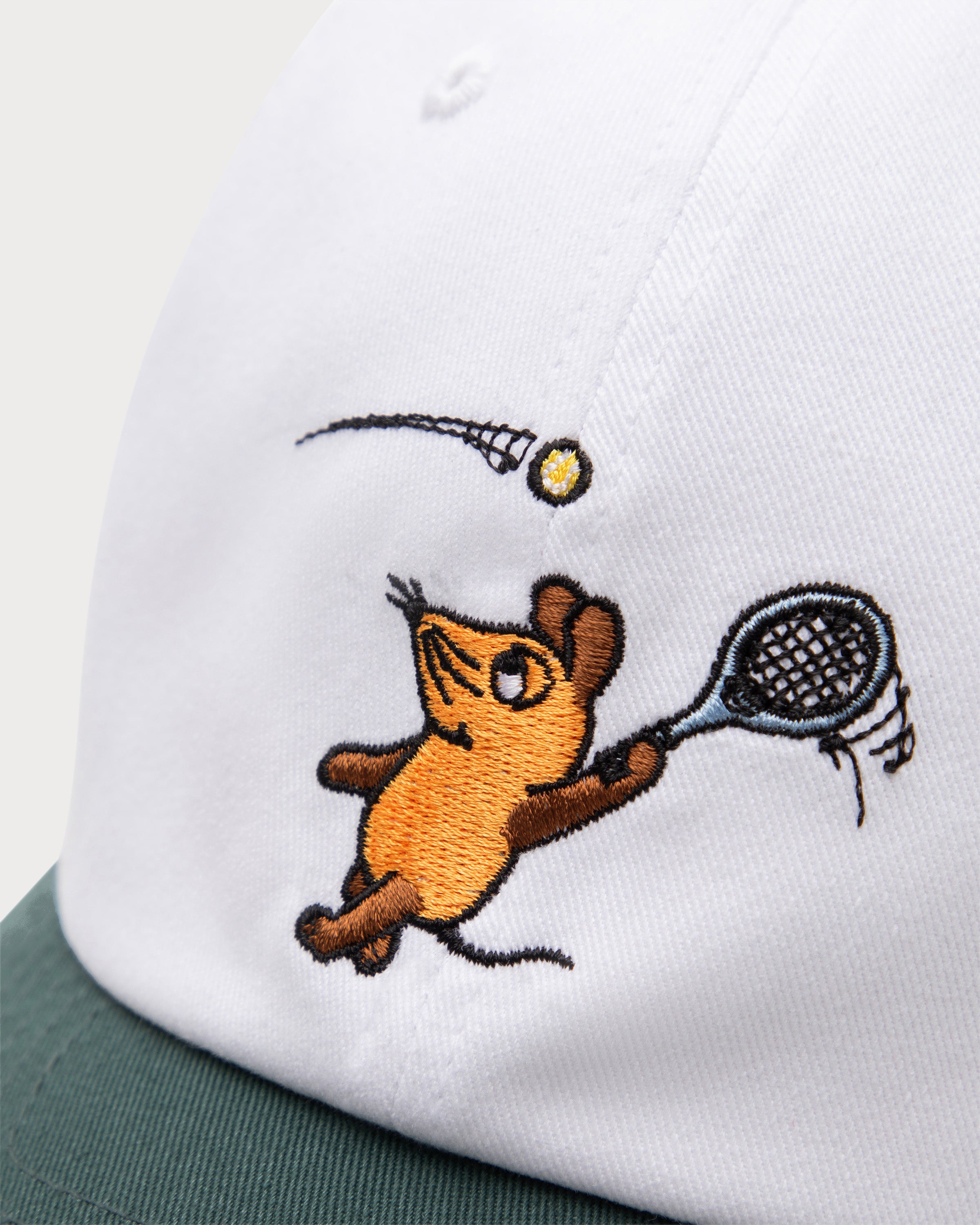 Die Maus beim Tennisspielen ziert als hochwertiger Stick die Front dieser zweifarbigen Tennis Cap. Der dunkelgrüne Schirm und die passenden Details verleihen der weißen Cap einen sportlichen Look, der durch den gestickten „since 1971"-Schriftzug auf der Rückseite perfekt abgerundet wird.